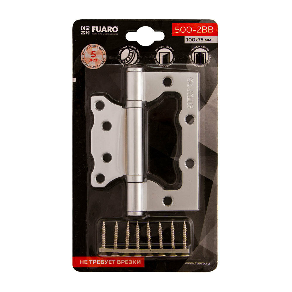 Петля без врезки N100500/2BB-PC/BL 100х75х2.5 мм сталь цвет перламутровый хром Fuaro