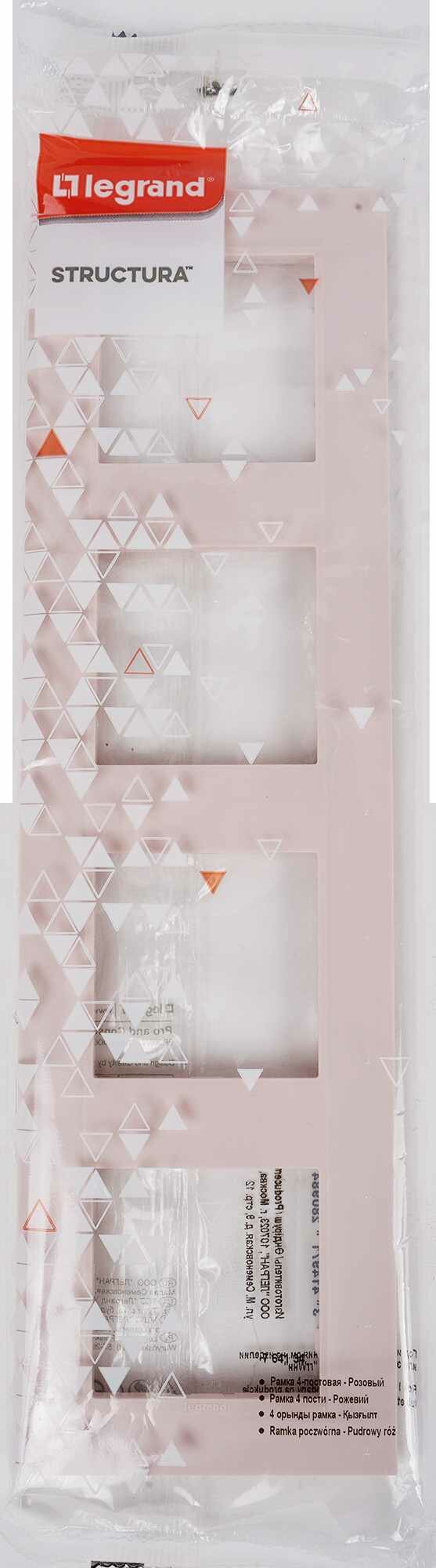 Рамка для розеток и выключателей Legrand Structura, 4 поста, розовый.