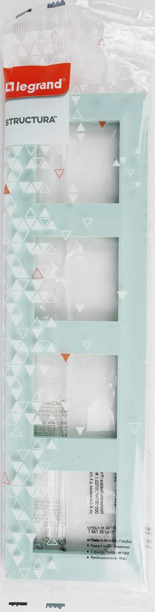Рамка для розеток и выключателей Legrand Structura, 4 поста, голубой.