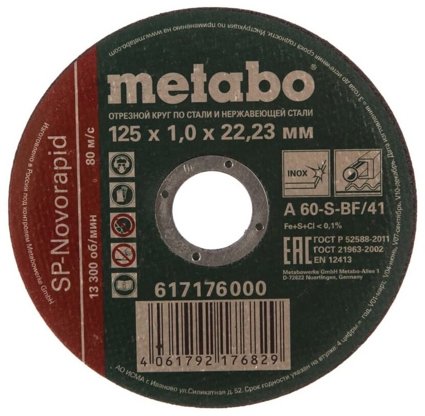 Круг отрезной по металлу и нержавеющей стали Metabo предназначен для работы с высоколегированными сортами стали: