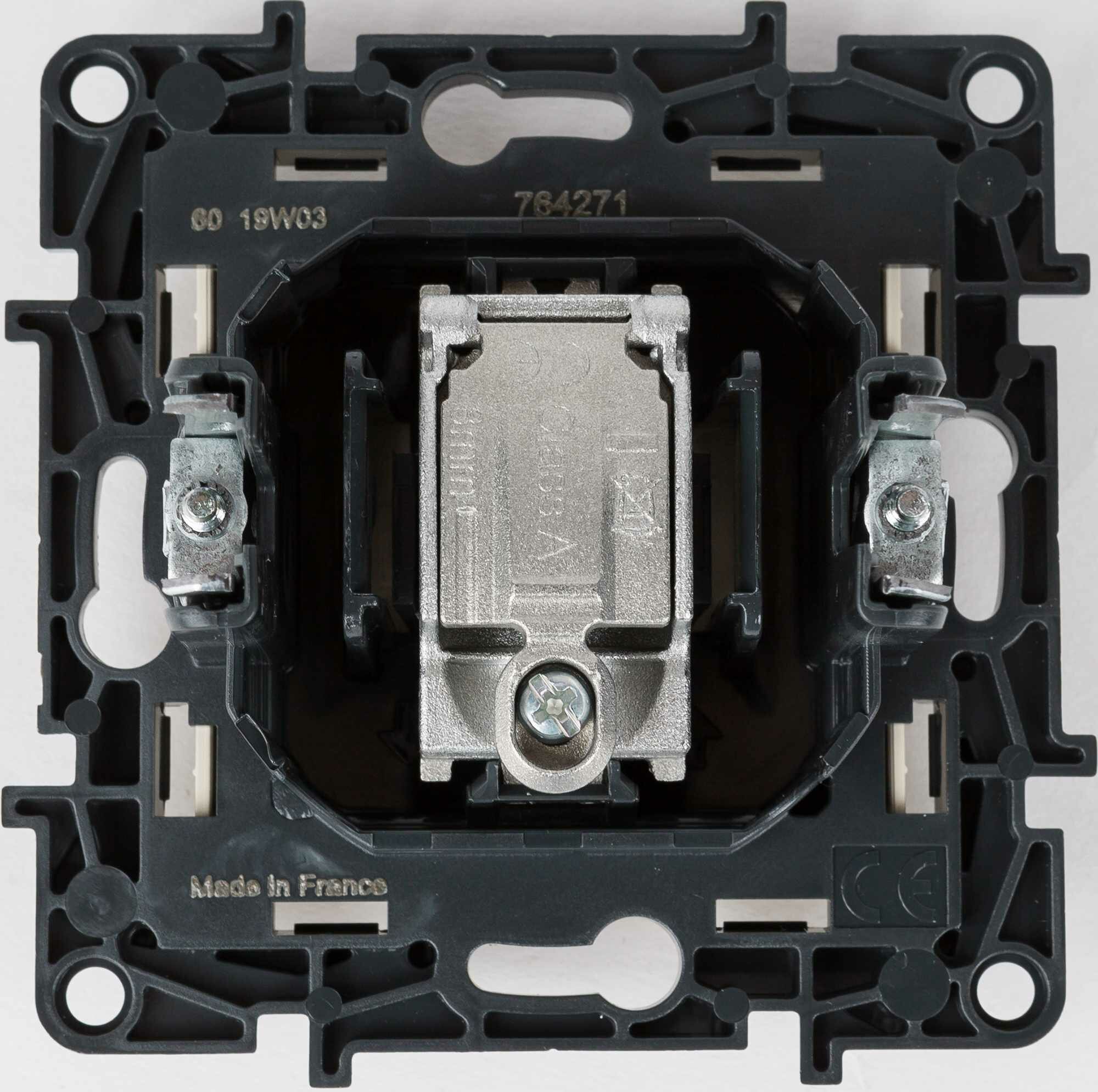 Присоединение приходящего и отходящего коаксиальных кабелей к розетке осуществляется удобным безвинтовым коннектором.