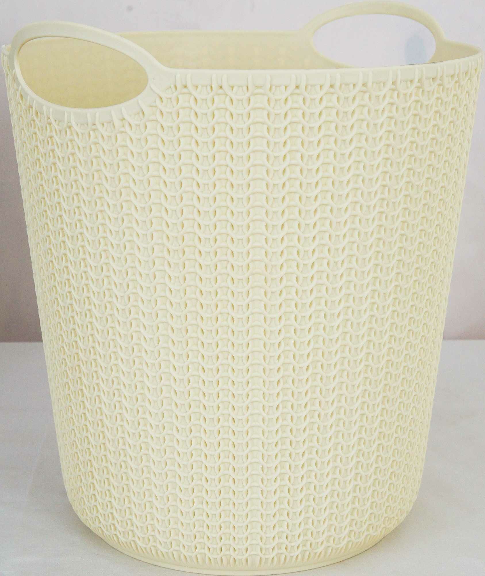 Корзина для мусора «Вязание» — вместительная десятилитровая емкость для накапливания и переноски бумажных отходов. Подходит для эксплуатации в квартирах, частных домах, офисах, отелях. Может использоваться с мусорными пакетами. Корзина изготовлена из полипропилена. Размер изделия 26х29х26 см, цвет — «слоновая кость».