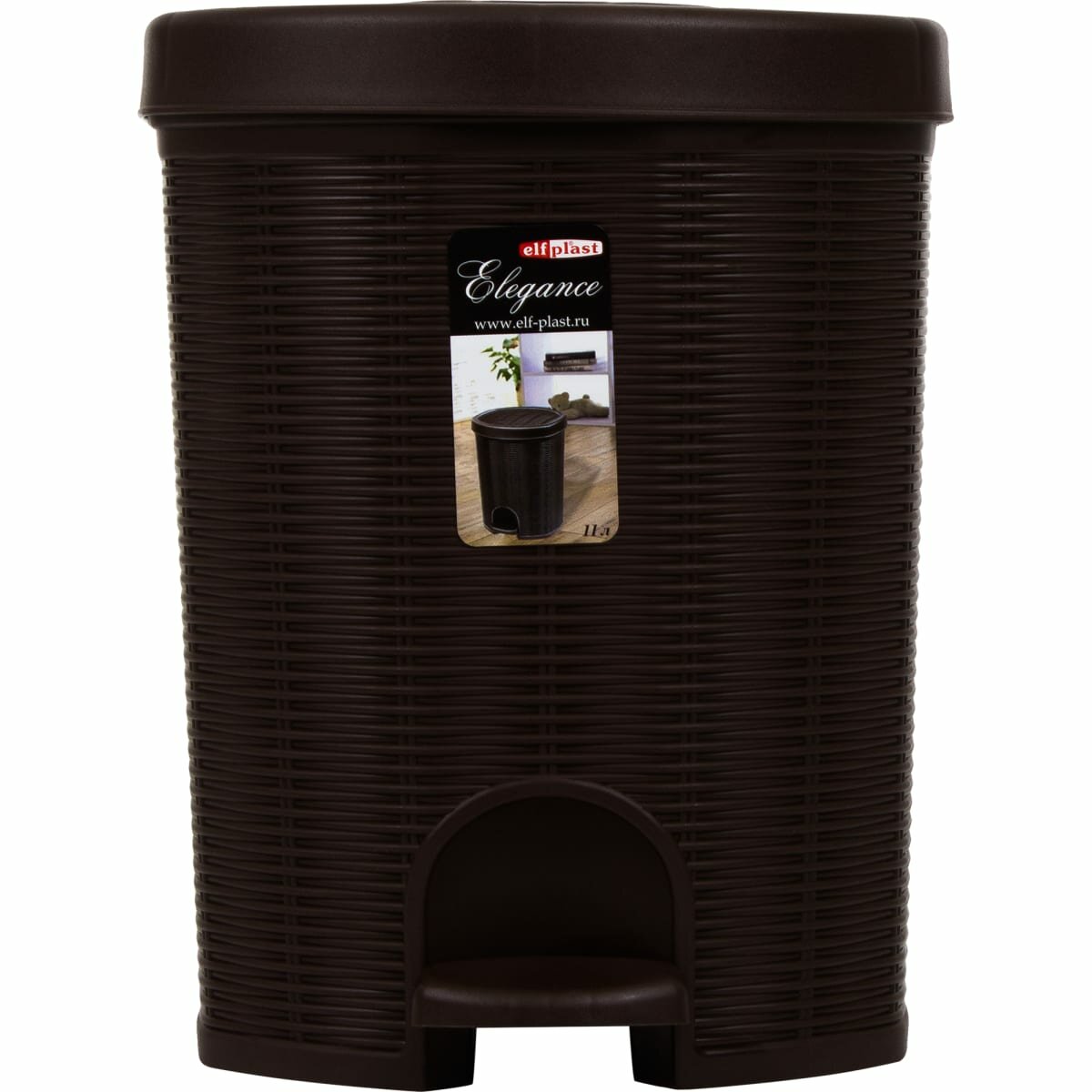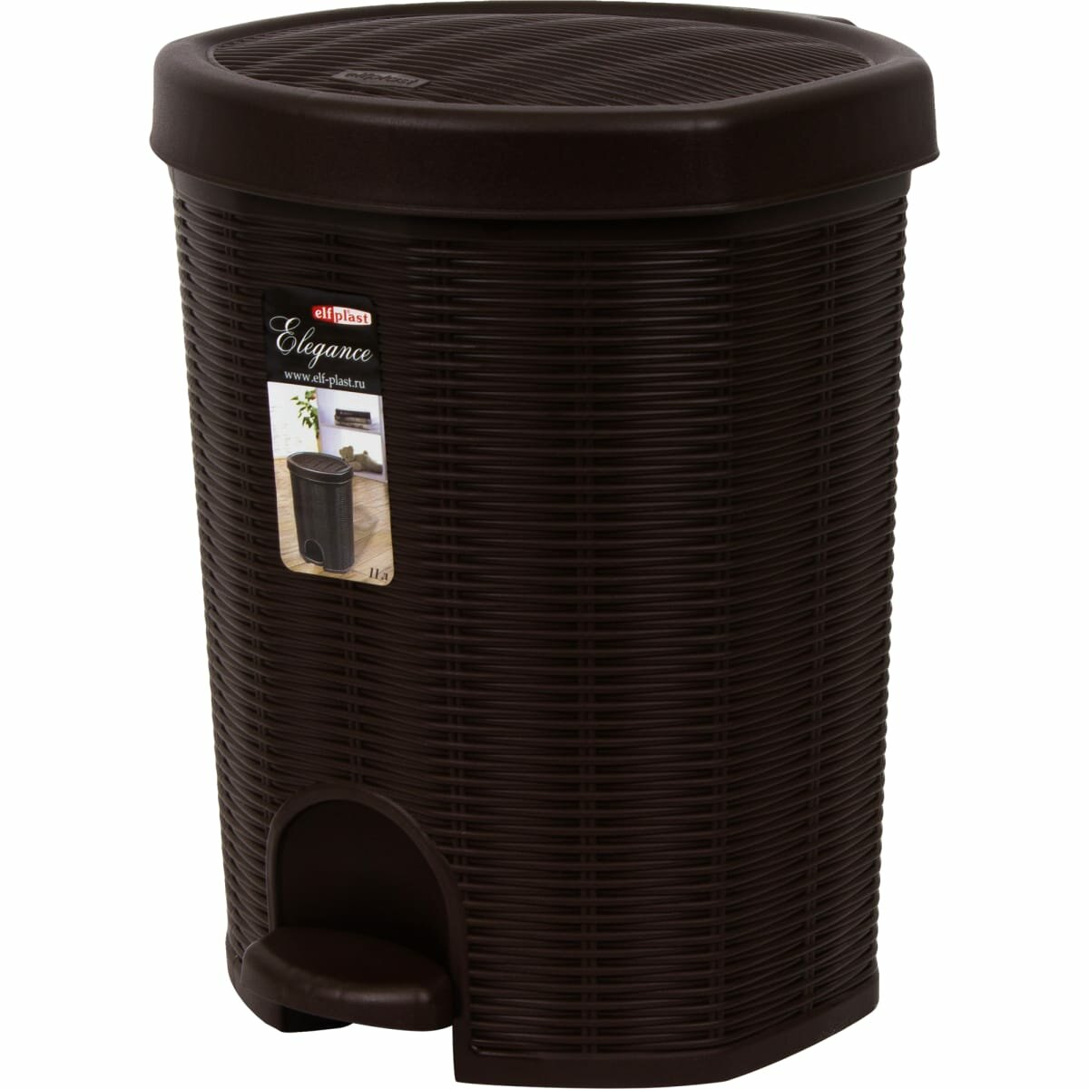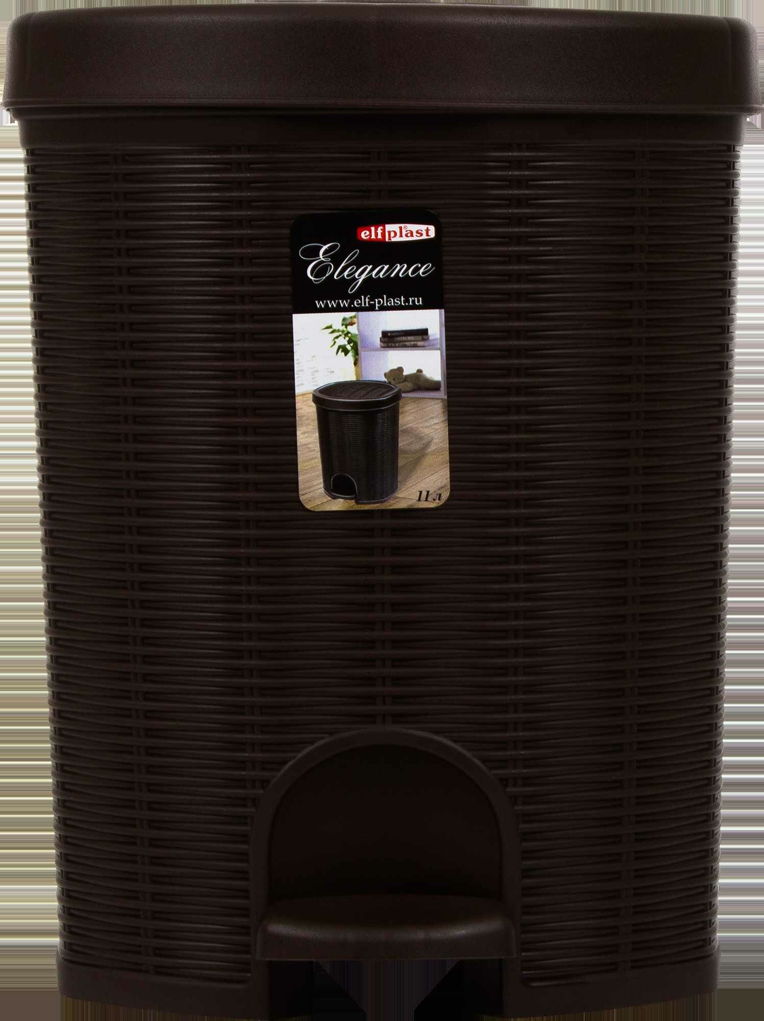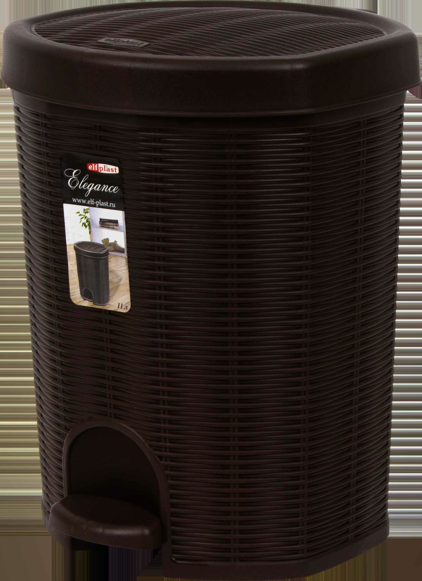 Контейнер для мусора Elegance темно-коричневого цвета предназначен для организации хранения мусора в помещениях с высокими требованиями к гигиеничности. Дизайн бака имитирует плетение из лозы. Емкость изготовлена из прочного, влагостойкого пластика. Вместительность — 11 литров.