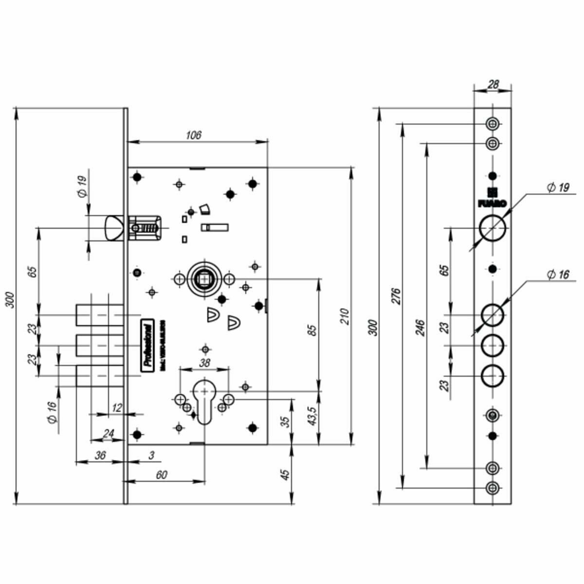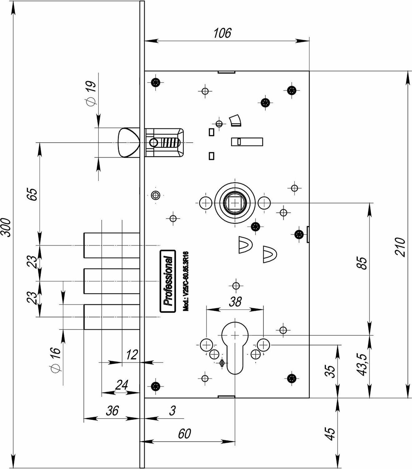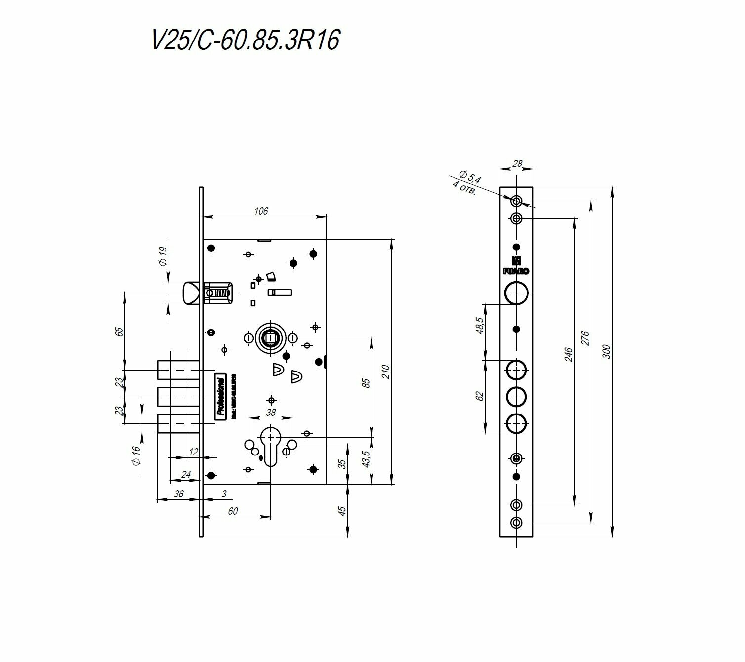 Корпус замка V25/C-60.85.3R16 предназначен для врезки во входные двери толщиной до 120 мм. Изготовлен из стали с цинковым покрытием, которое защищает металл от коррозии. Благодаря универсальной реверсивной защелке корпус подходит для дверей с левым и правым направлением открывания. Цилиндровый механизм и ручка докупаются отдельно.
