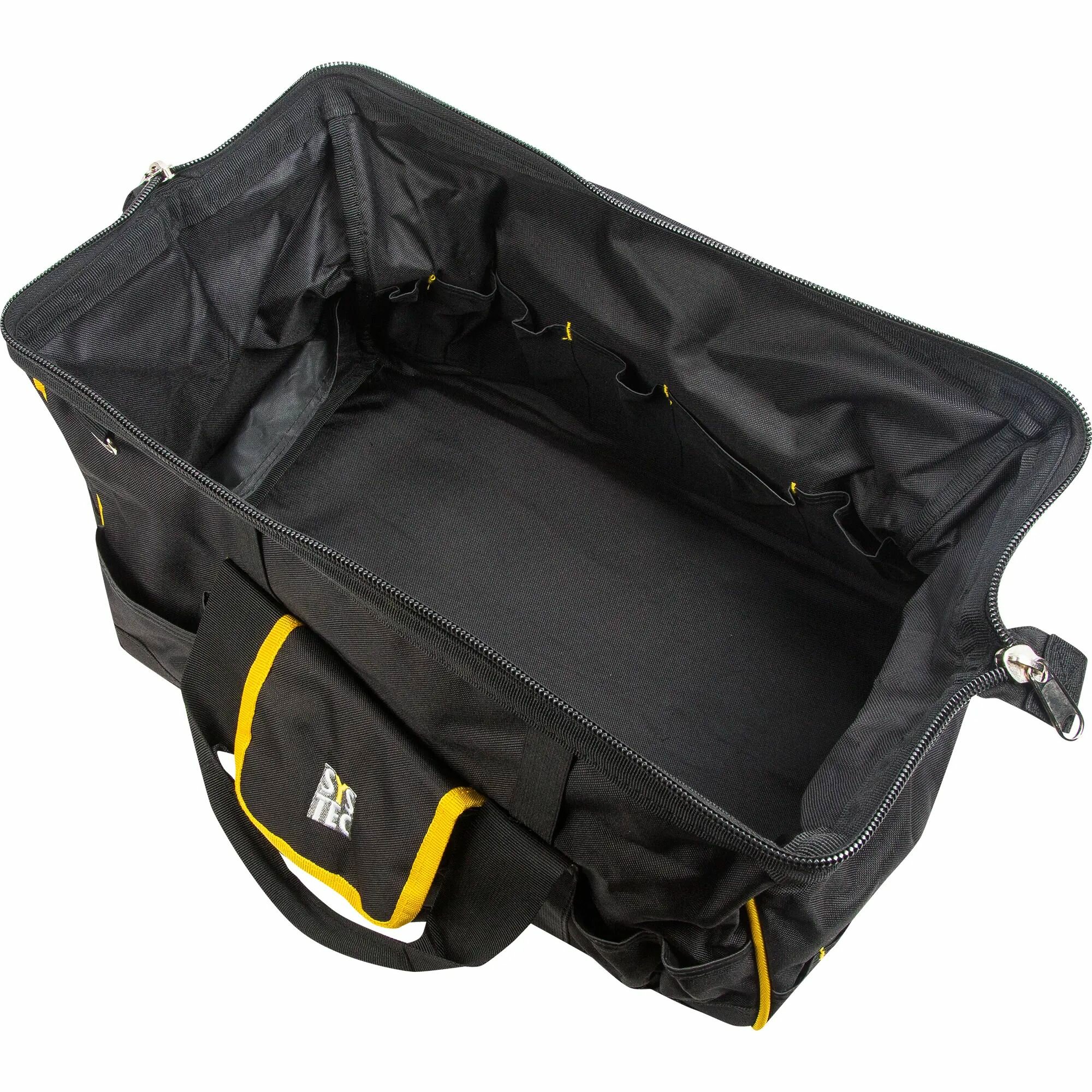 Сумка для инструментов Systec с 30-ю карманами предназначена для хранения и транспортировки инвентаря, который используется при выполнении строительных, ремонтных и монтажных работ. Изготовлена из прочного полиэстера, стенки снабжены поролоновыми прокладками для защиты инструментов от механических повреждений во время переноски. Укомплектована наплечным ремнем с мягкой накладкой, дополнена наружным карманом с клапаном.