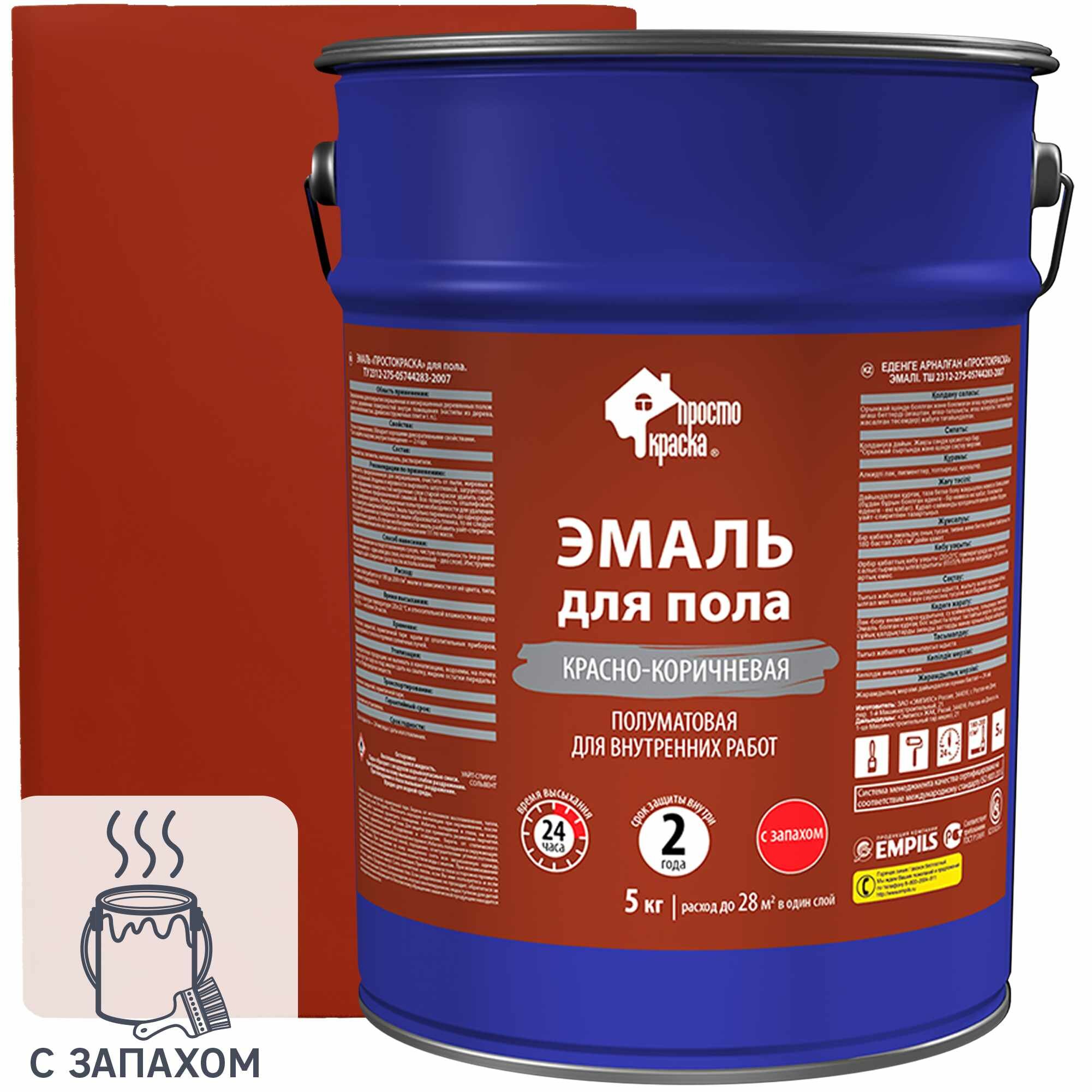 Эмаль для пола Простокраска атласная цвет красно-коричневый 5 кг