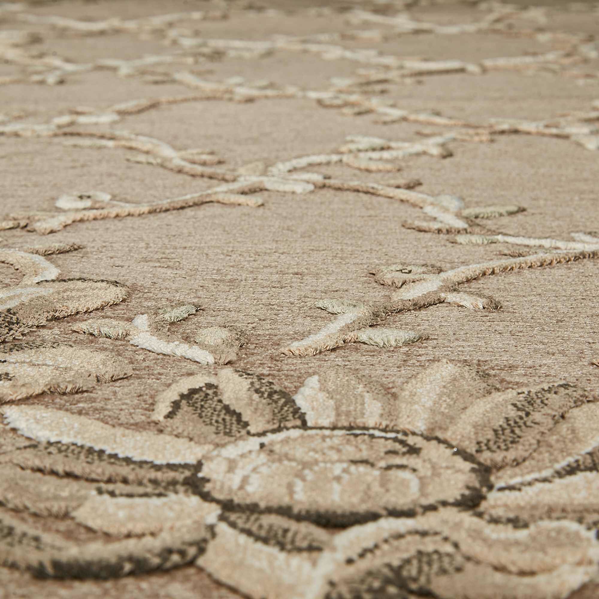 Ворс ковра имеет четкую направленность, его яркость и оттенок могут отличатся в зависимости от угла падения света.