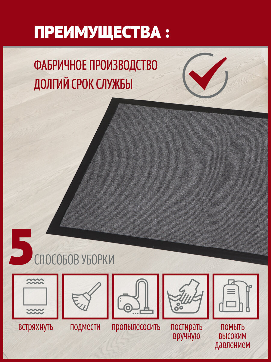 Коврик Ekspo — это практичный аксессуар универсального назначения: подходит для использования в прихожей, тамбуре или на крыльце перед домом. Изготовлен механическим способом из прочного и влагостойкого полипропилена, хорошо переносит влажную среду, не боится сложных погодных условий. Ворсистое покрытие задерживает грязь и пыль. Нейтральный серый цвет маскирует загрязнения. Страна производства — Россия.