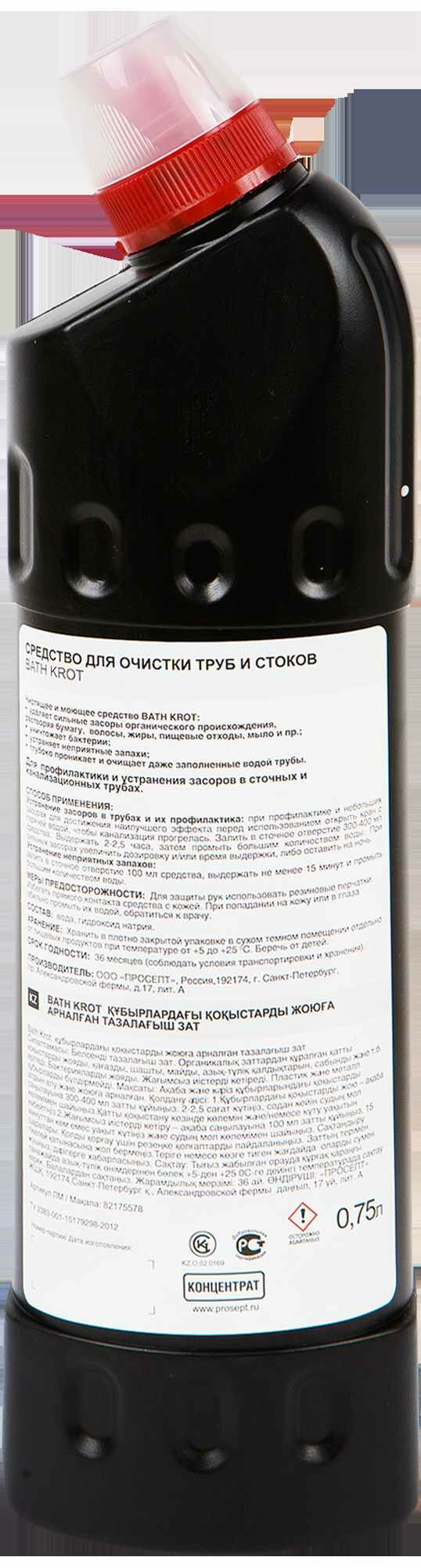 Устранение засоров в трубах и их профилактика: при профилактике и небольших засорах для достижения наилучшего эффекта перед использованием открыть кран с горячей водой, чтобы канализация прогрелась. Залить в сточное отверстие 300-400 мл средства. Выдержать 2-2,5 часа, затем промыть большим количеством воды. При сильных засорах увеличить дозировку и/или время выдержки.