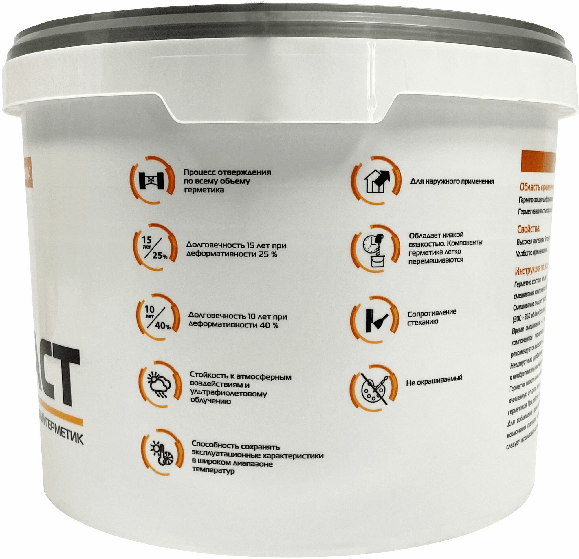 | Инструкция по применению | Состоит из двух компонентов - основной пасты и отвердителя. После отверждения - эластичный, резиноподобный материал с высокими деформационными и прочностыми свойствами. Смешивание следует производить при помощи электродрели мощностью 600-800 Вт со спиралевидной мешалкой. Время смешивания – не менее 10 минут. При низких температурах вязкость компонентов герметика увеличивается, поэтому перед применением его следует выдержать в отапливаемом помещении не менее суток. Недопустимо разбавление герметика растворителями – это может привести к необратимому изменению его свойств. Герметик может наноситься на влажную (но не мокрую) поверхность, полностью очищенную от грязи, жира, остатков цементного раствора или ранее примененных герметиков. При работах в зимнее время очистить поверхность от наледи и инея. Герметик следует наносить при помощи шпателя. Инструменты мыть ацетоном или уайтспиритом. В завулканизованном состоянии удаляется механическим путем. |
