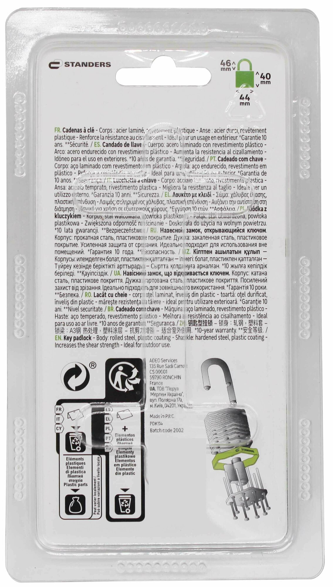 Замок навесной Standers с длинной дужкой 44x40 мм сталь