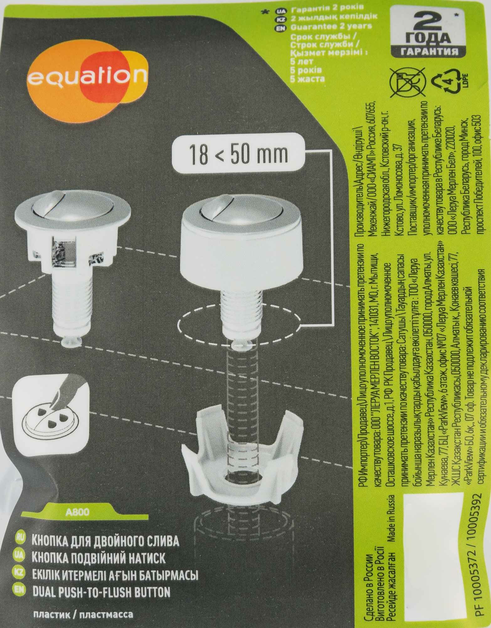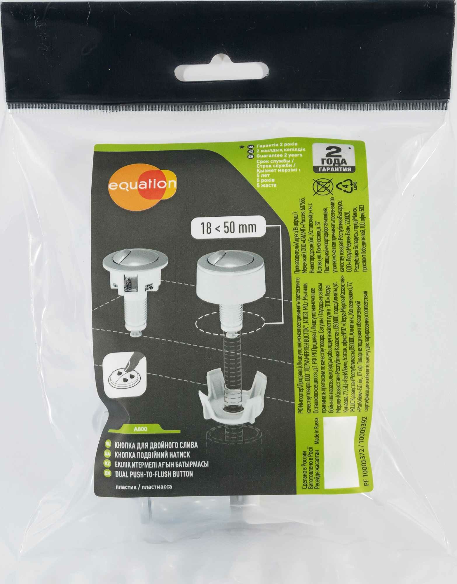 Кнопка смыва Equation двойная - кнопка для унитаза с функцией двойного слива. С помощью данной кнопки пользователь может использовать обычный слив и слив в двойном объеме воды.