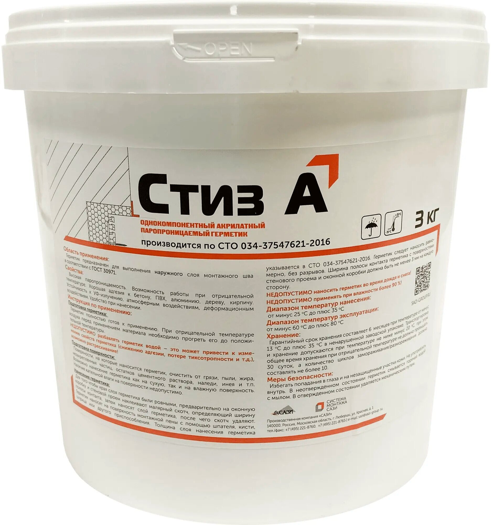 **Герметик для окон Стиз А** используется для устройства наружного слоя монтажного шва в узлах примыкания оконных коробов к проемам отапливаемых зданий и сооружений. Состав однокомпонентный, обладает высокой паропроницаемостью, высокой адгезией к кирпичу, бетону и другим строительным материалам. Устойчив к ультрафиолетовому излучению, негативному воздействию влаги и перепадам температур.
