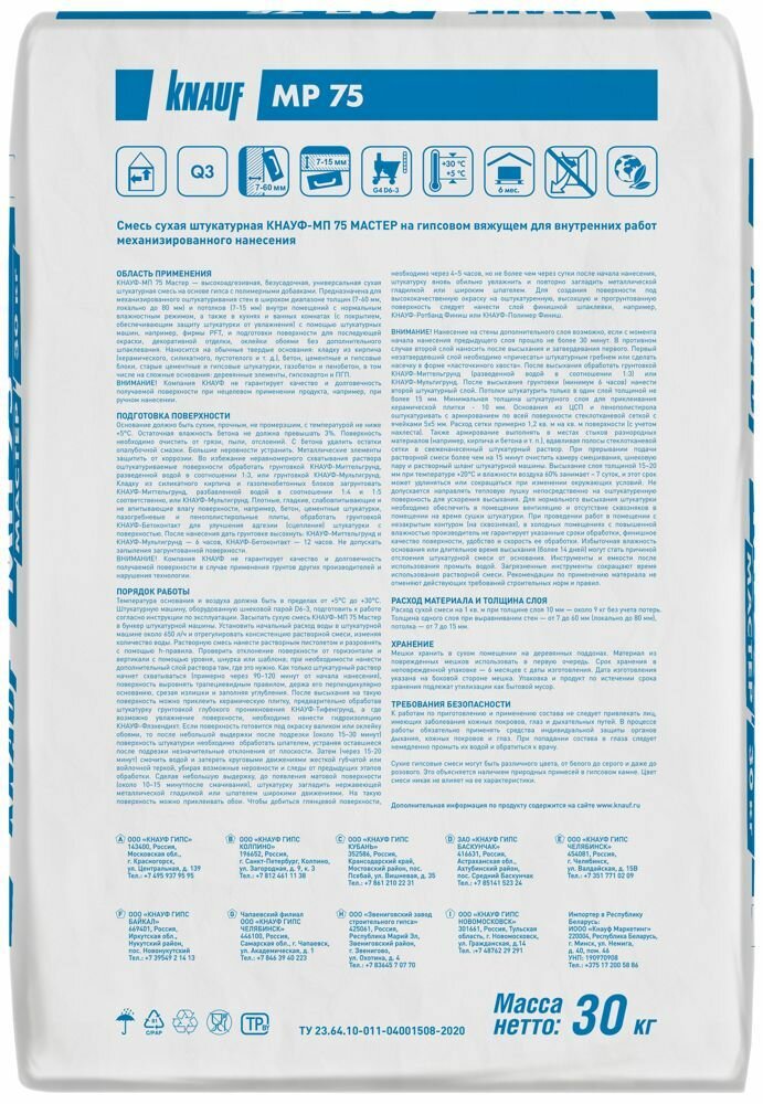 Штукатурка механизированная гипсовая Knauf МП 75 30 кг