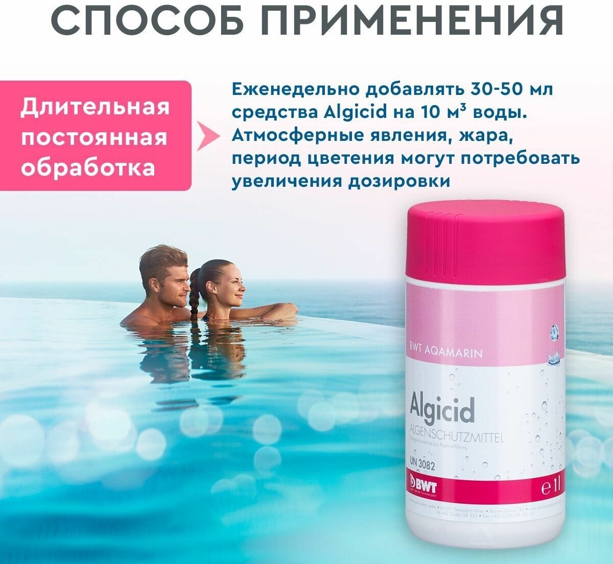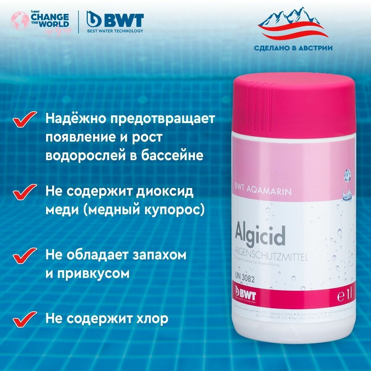 Жидкий концентрированный альцигид BWT AQA Marin Algicid 1 л борьба с водорослями плесенью и грибком средство для бассейна