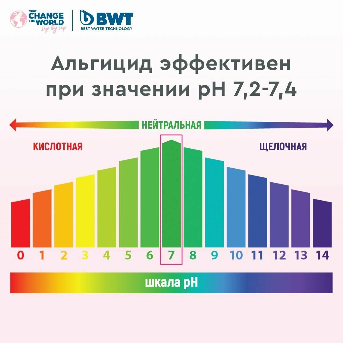 BWT AQA marin Algicid – жидкое концентрированное средство для борьбы с ростом и размножением водорослей в бассейнах. Может использоваться для борьбы с плесенью и грибком.