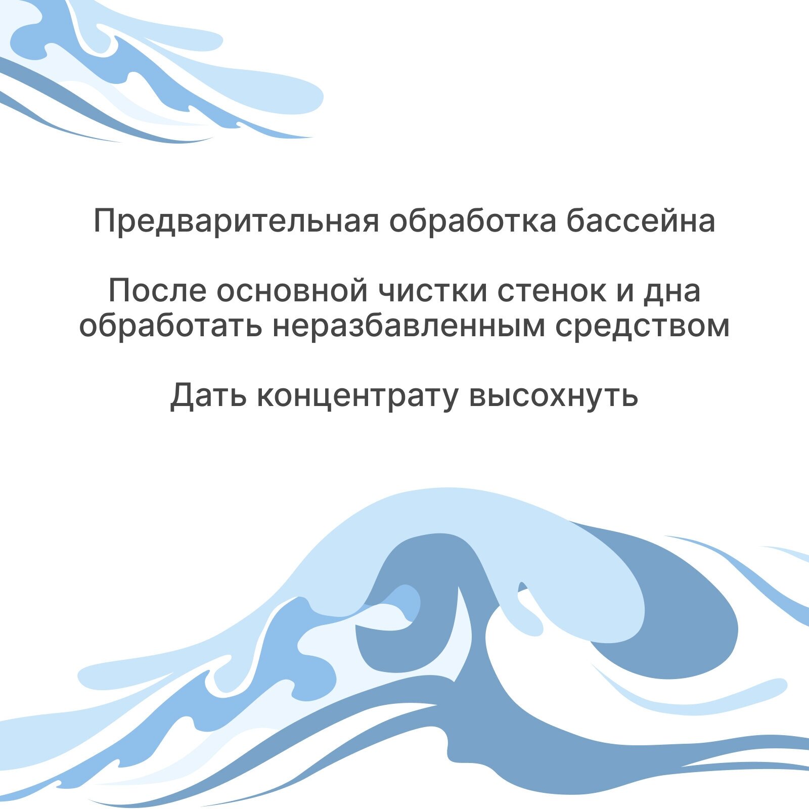 Простота использования. Для первой очистки перед запуском в эксплуатацию стенки и дно бассейна обрабатывают неразбавленным средством – это позволяет избежать появления водорослей. В дальнейшем достаточно добавлять 30-50 мл препарата на 10 кубометров объема воды.