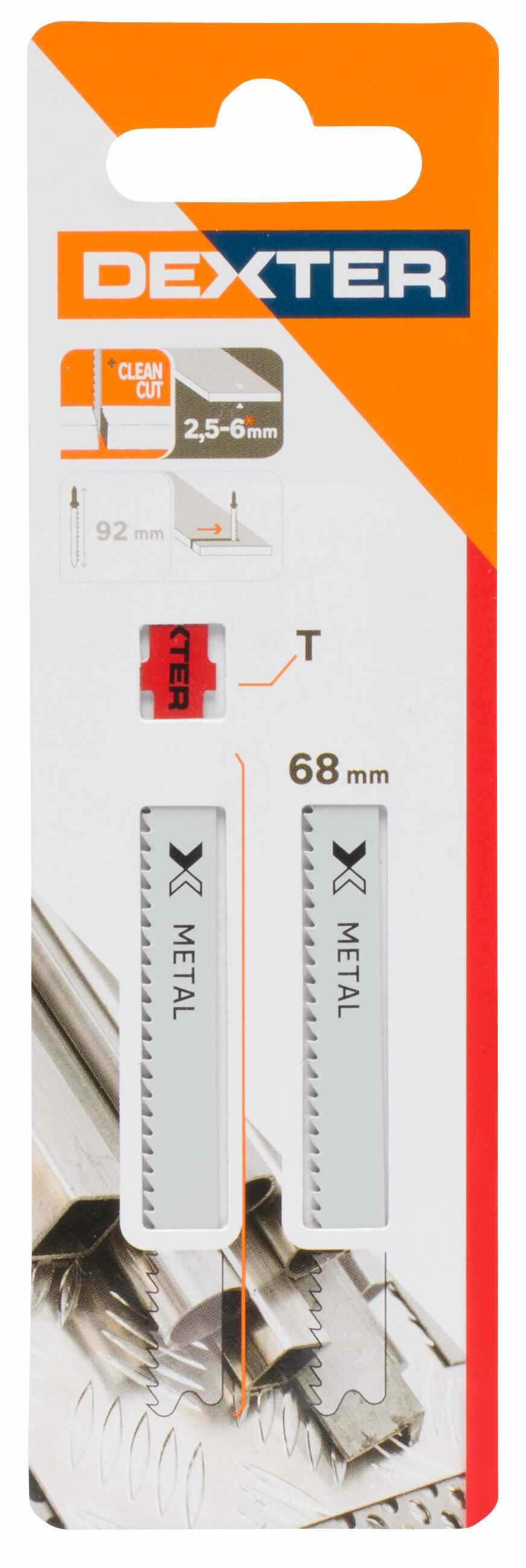 **Пилки по металлу для лобзика Dexter** благодаря сменяемости обеспечивают бесперебойную работу режущего устройства. Зубья выполнены в форме конуса, расстояние между ними составляет 2 мм. Лезвие с Т-образным креплением изготовлено из стали.