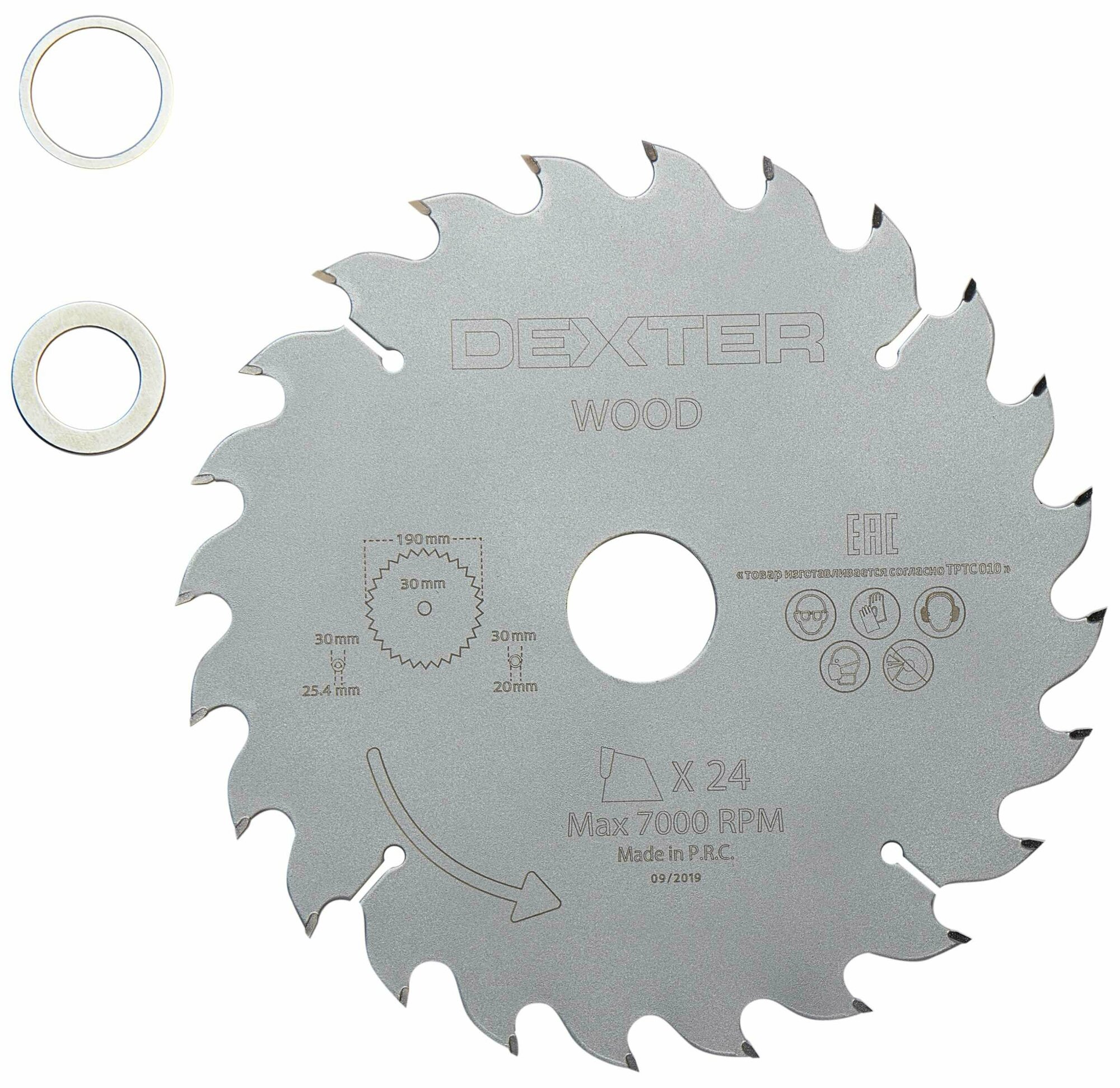 Диск пильный Dexter FD-E031903024T предназначен для резки изделий из древесины и материалов на ее основе. Устанавливается на циркулярные и торцовочные пилы с диаметром посадочного отверстия 30 мм (в комплект также входят два переходных кольца на меньший диаметр). Наружный диаметр диска — 190 мм.