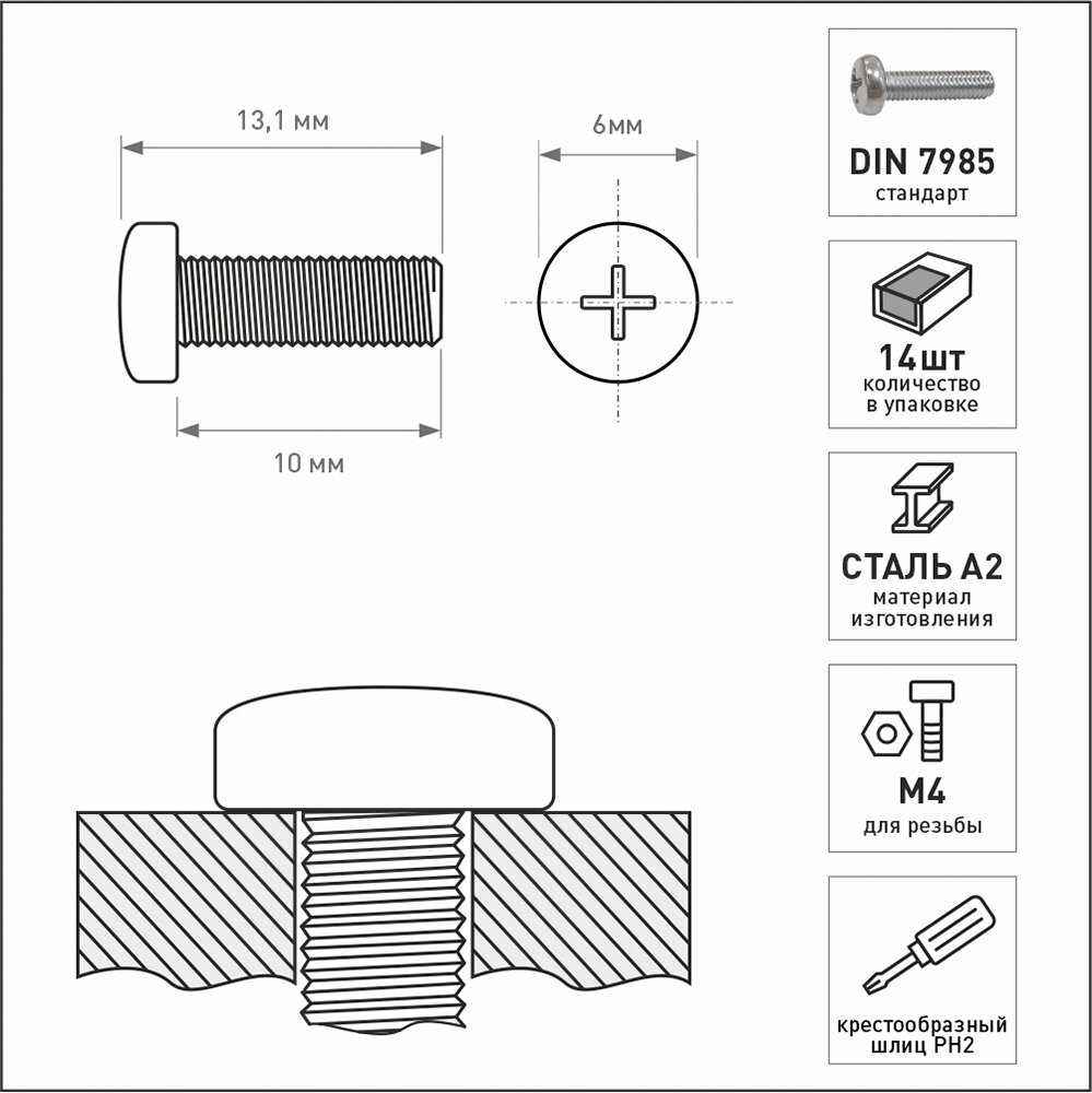 Винт с полукруглой головкой М4x10 мм DIN 7985 нержавеющая сталь 14 шт. Невский крепеж