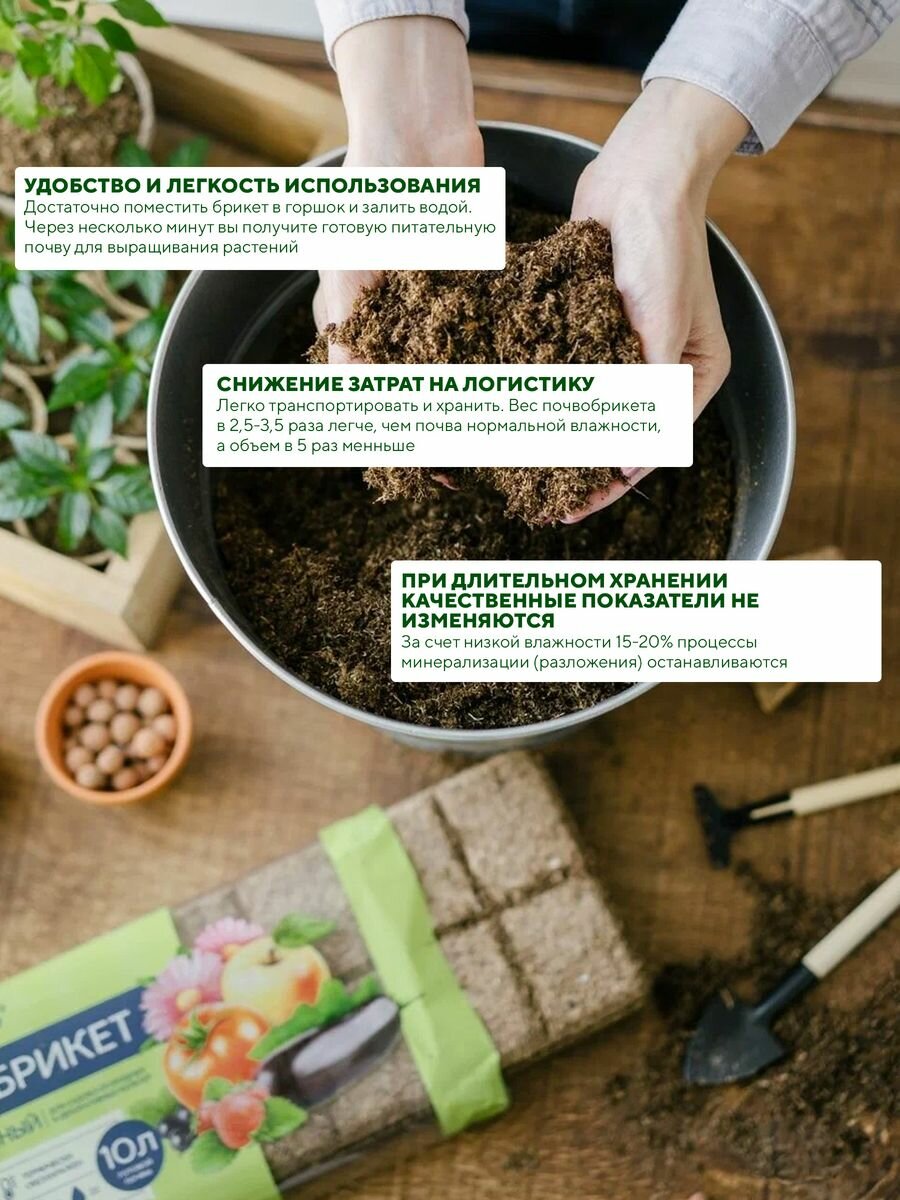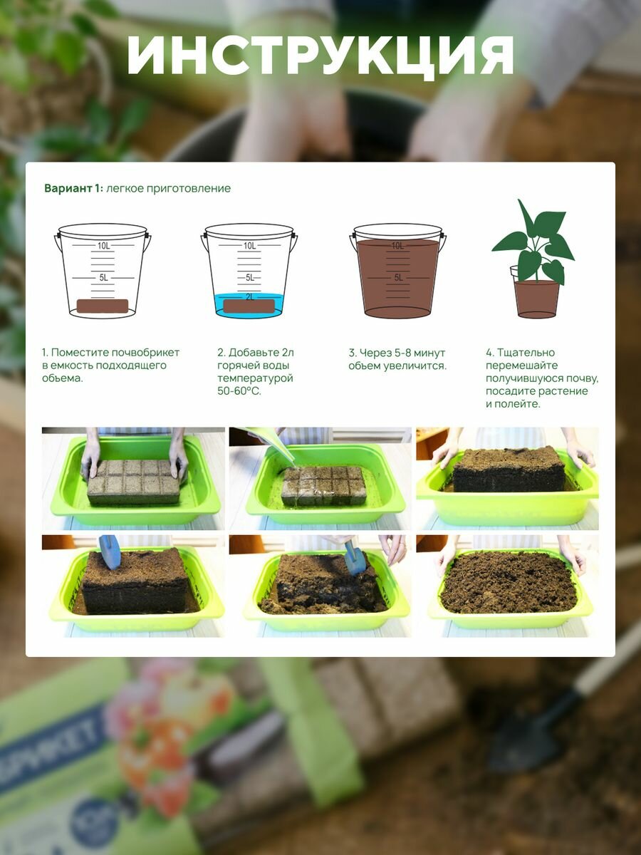 | Способ применения | добавить 1 литр воды к почвобрикету, подождать 5-8 минут |