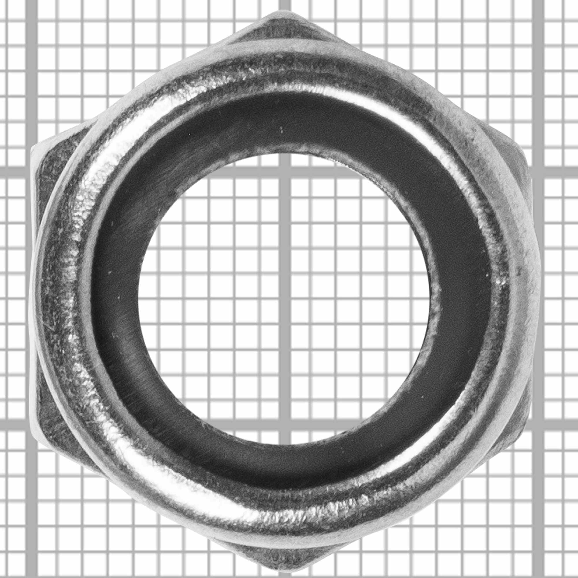 Гайка самоконтрящаяся DIN 985 имеет стопорное кольцо, которое не дает крепежу самопроизвольно открутиться. Применяется с болтами, винтами или шпильками на подвижных соединениях, например, для фиксации подшипника на валу, крепления шестеренок или шкивов.