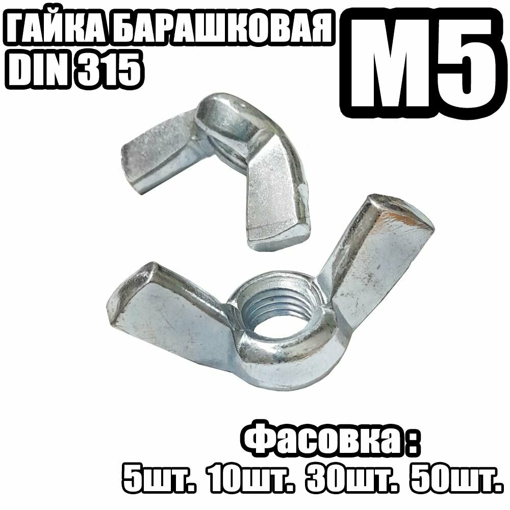 Гайка барашковая М5 DIN 315 нержавеющая сталь 10 шт. Невский крепеж