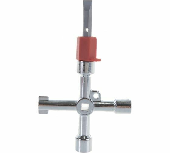 **Ключ для электрошкафов КЭШ-5** — универсальный, многофункциональный элемент, применяемый в сантехнических шкафах, системах вентиляции, кондиционирования. Включает 5 рабочих профилей, двухстороннюю биту и адаптер.