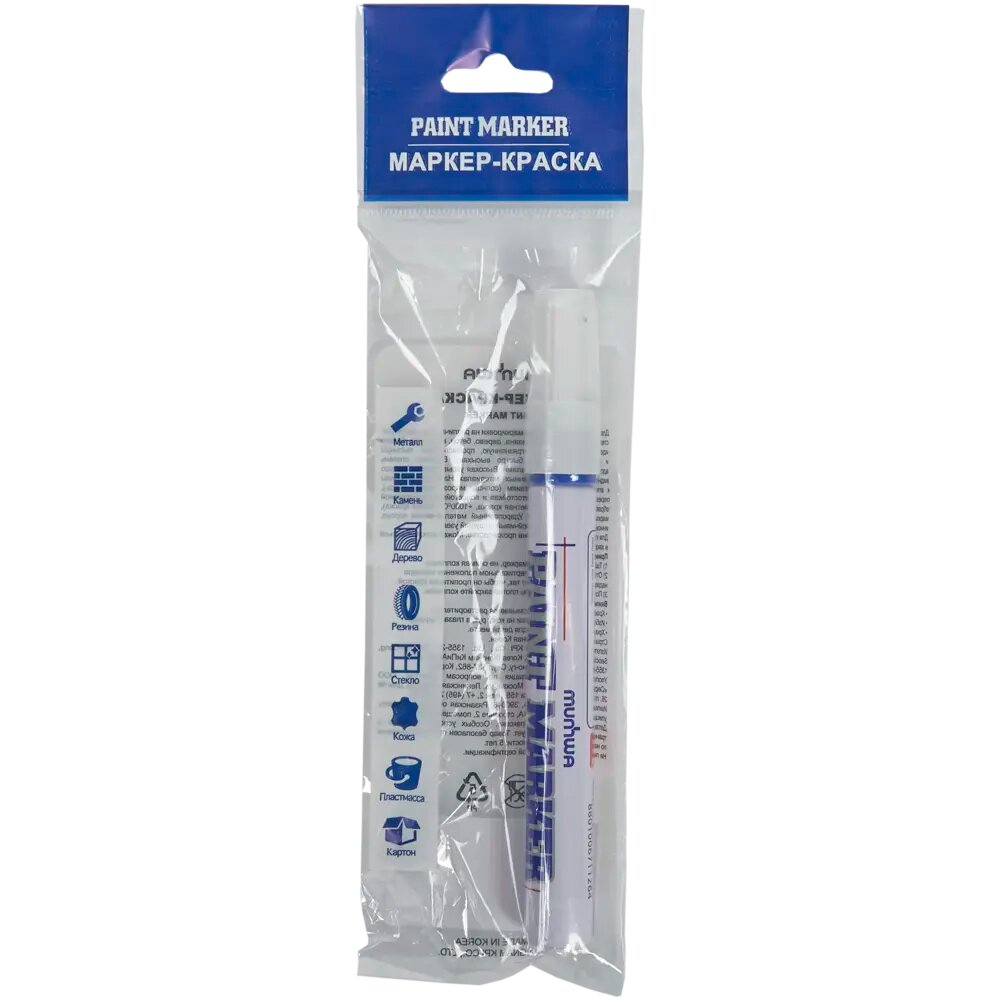 Маркер-краска MunHwa — профессиональный красящий состав на нитрооснове, помещенный в прочный алюминиевый корпус длиной 14 см. Нитрокраска отличается хорошей адгезией к различным поверхностям и высокой укрывистостью, быстро высыхает. Цвет маркера — синий. Толщина линии — 4 мм. В быту изделие можно использовать для маскировки дефектов на обуви, корпусах бытовой техники и мебели, а также для реставрации покрытия кузова автомобиля, в торговых точках и на производстве — для маркировки товаров, в творчестве — для росписи предметов искусства.
