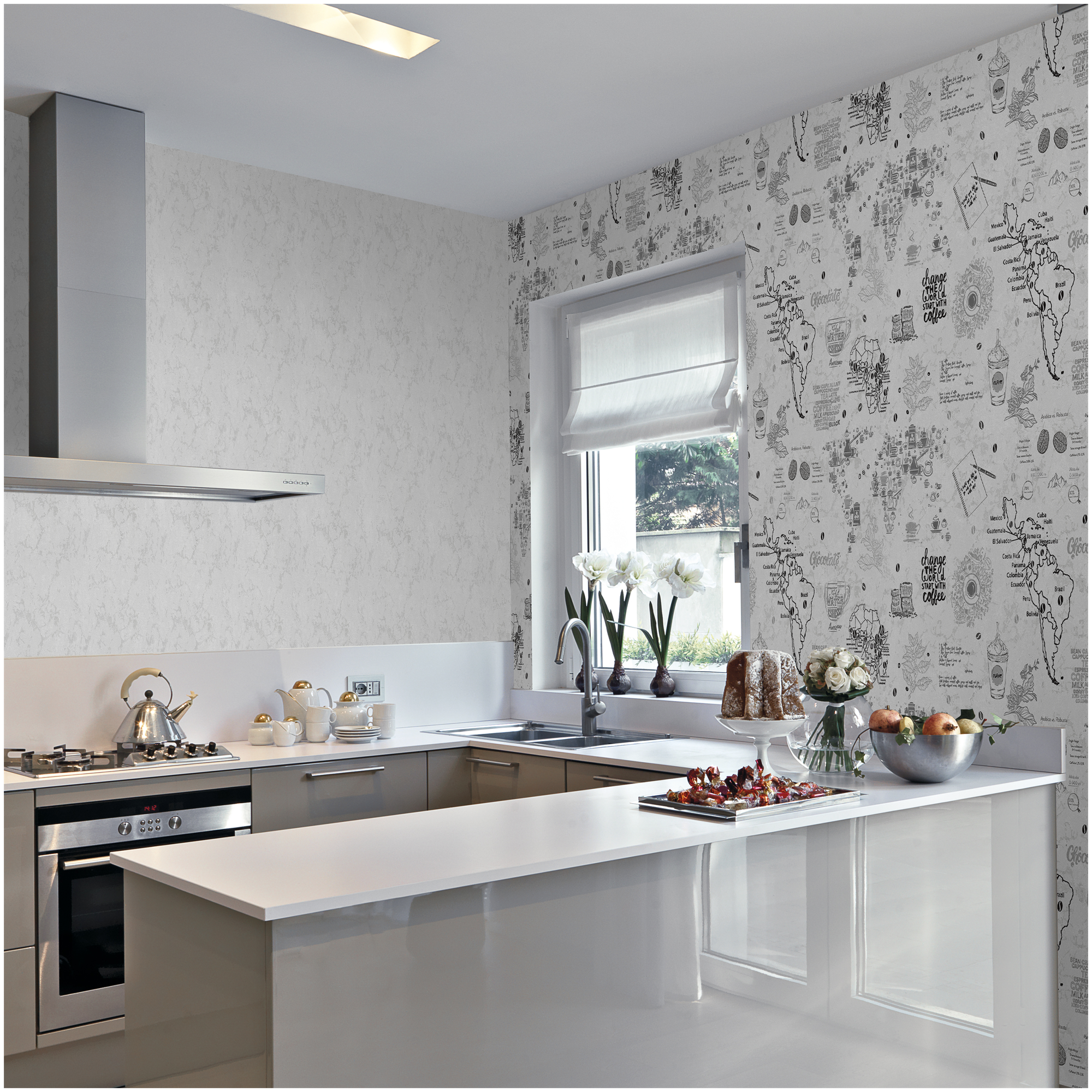 Обратите внимание на номер партии обоев: рулоны из разных партий могут различаться оттенком. Если партии не хватает на все стены, оклейте каждую стену одной партией. Обои Ateliero Coffee 888611 изготовлены из винила горячего тиснения на флизелиновой основе. Предназначены для жилой комнаты, подойдут для кухни. Покрытие с матовой поверхностью и рисунком на кофейную тему выполнено в дизайнерском стиле, расцветка белая. Под брендом Ateliero выпускаются высококачественные обои, в оформлении которых воплощены самые свежие и креативные современные тренды с тонким вниманием к деталям. Теплый уютный дизайн обоев из коллекции Coffee с милыми и стильными элементами, собранными в единый законченный образ, обволакивает пространство гармонией и романтикой.