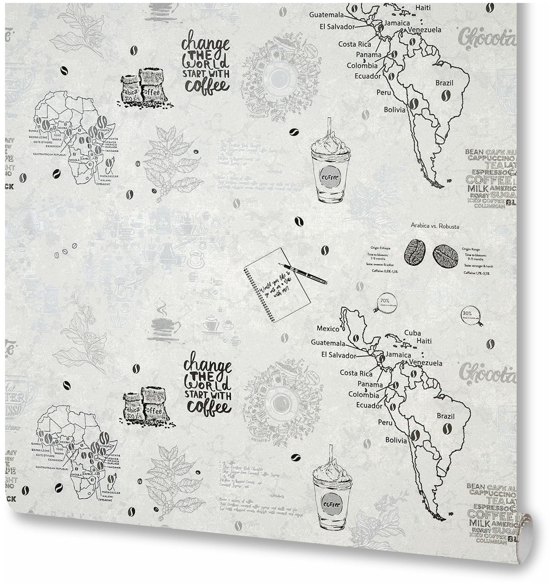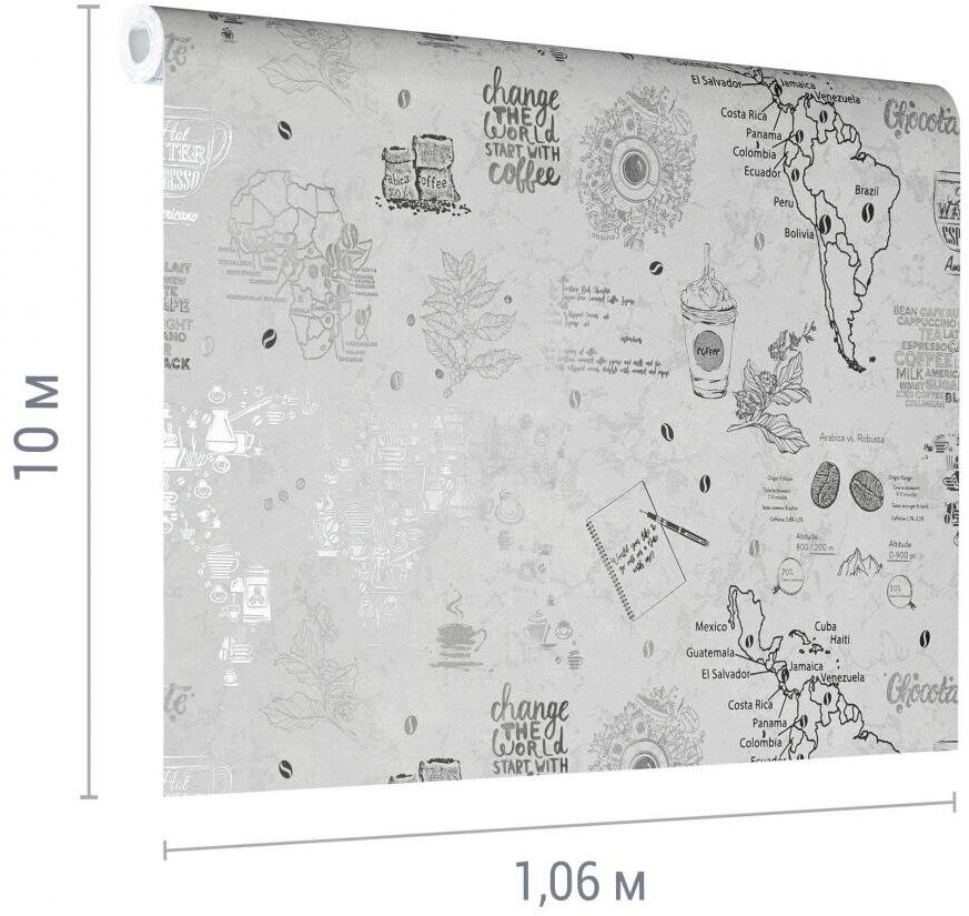 Обои флизелиновые Ateliero Coffee белые 1.06 м 888611