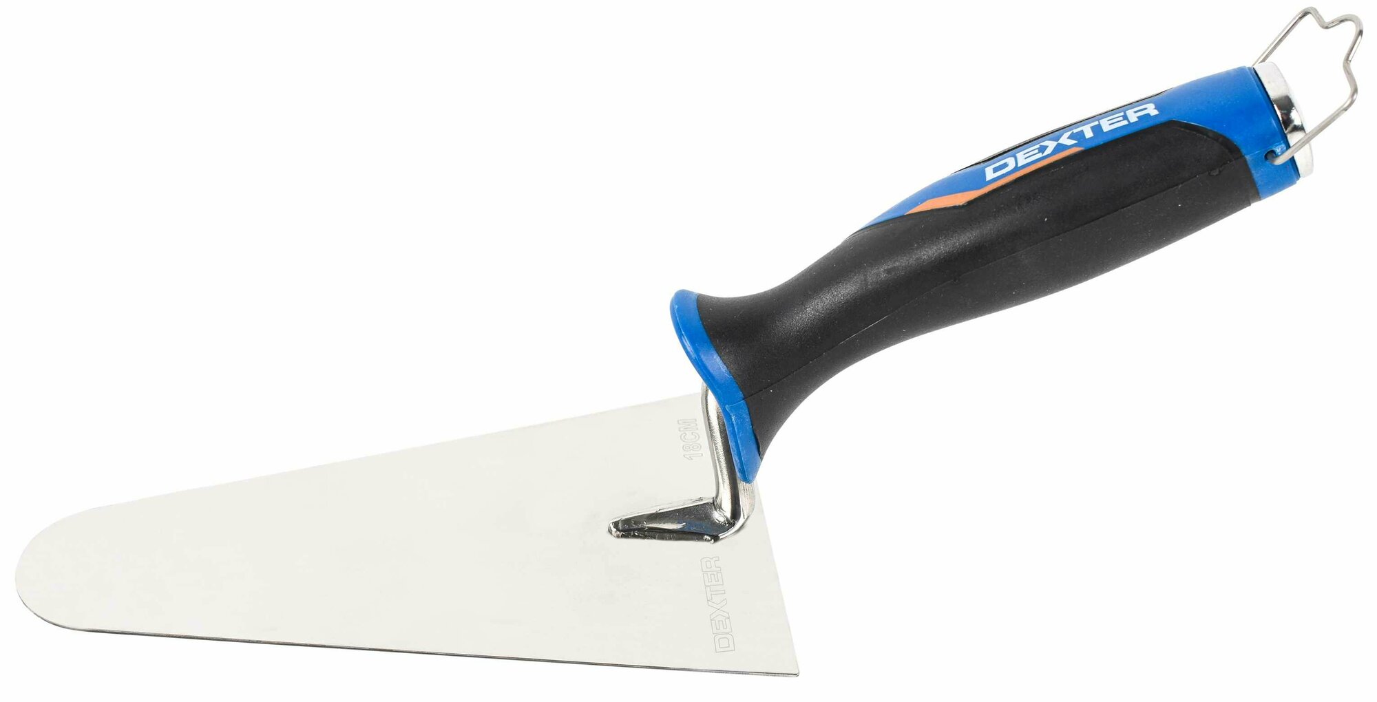 Кельма полукруглая Dexter — ручной инструмент каменщика и бетонщика. Кельмой удобно размешивать и наносить раствор, удалять излишки смеси из швов кладки. Общая длина инструмента составляет 32 см, длина рабочей планки — 18 см, ширина — 105 мм. Основной материал — нержавеющая сталь.
