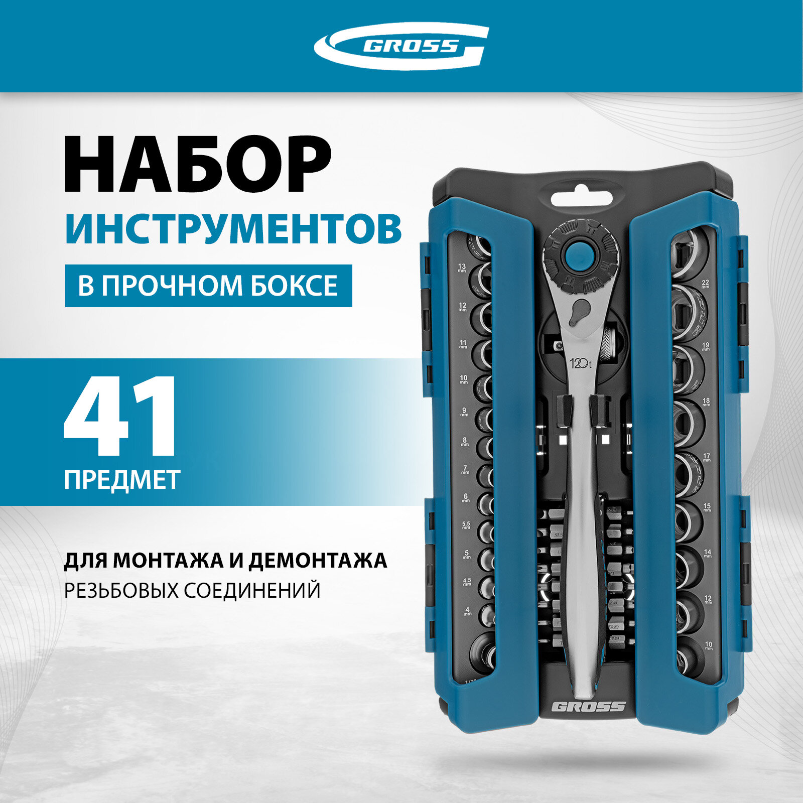 Набор торцевых головок с трещоткой Gross 1/2" - 1/4" 41 предмет (14143)