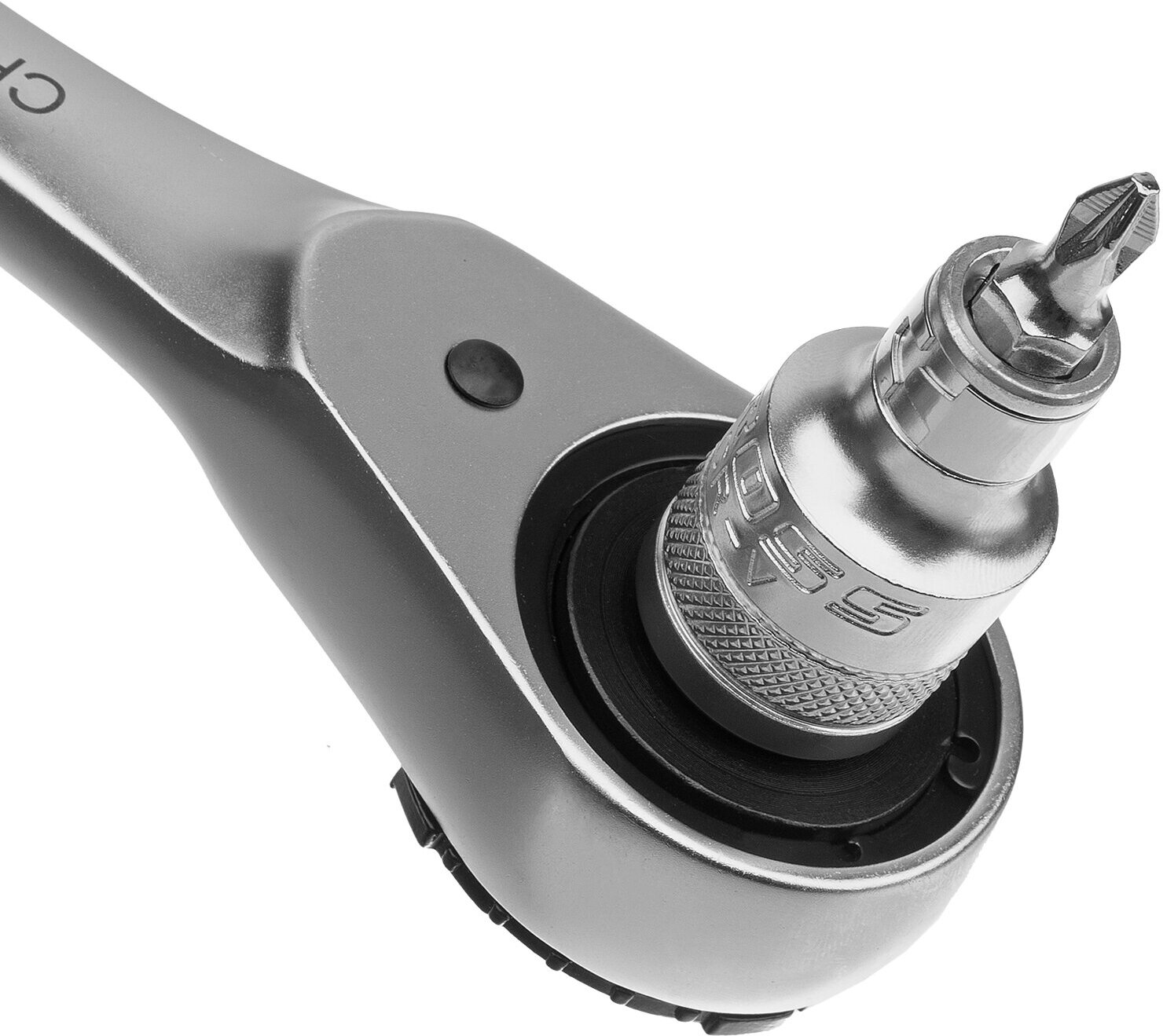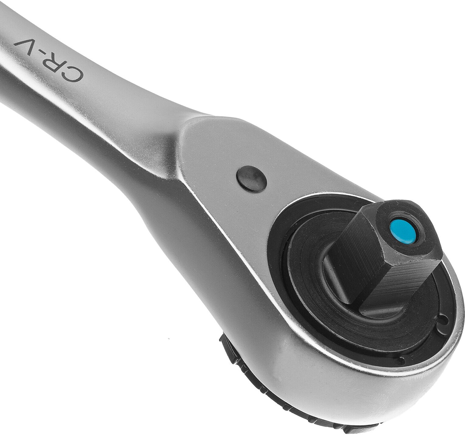Удобный торцевой ключ с реверсом позволяет производить работы в условиях, ограничивающих смену положения ключей или ворота.