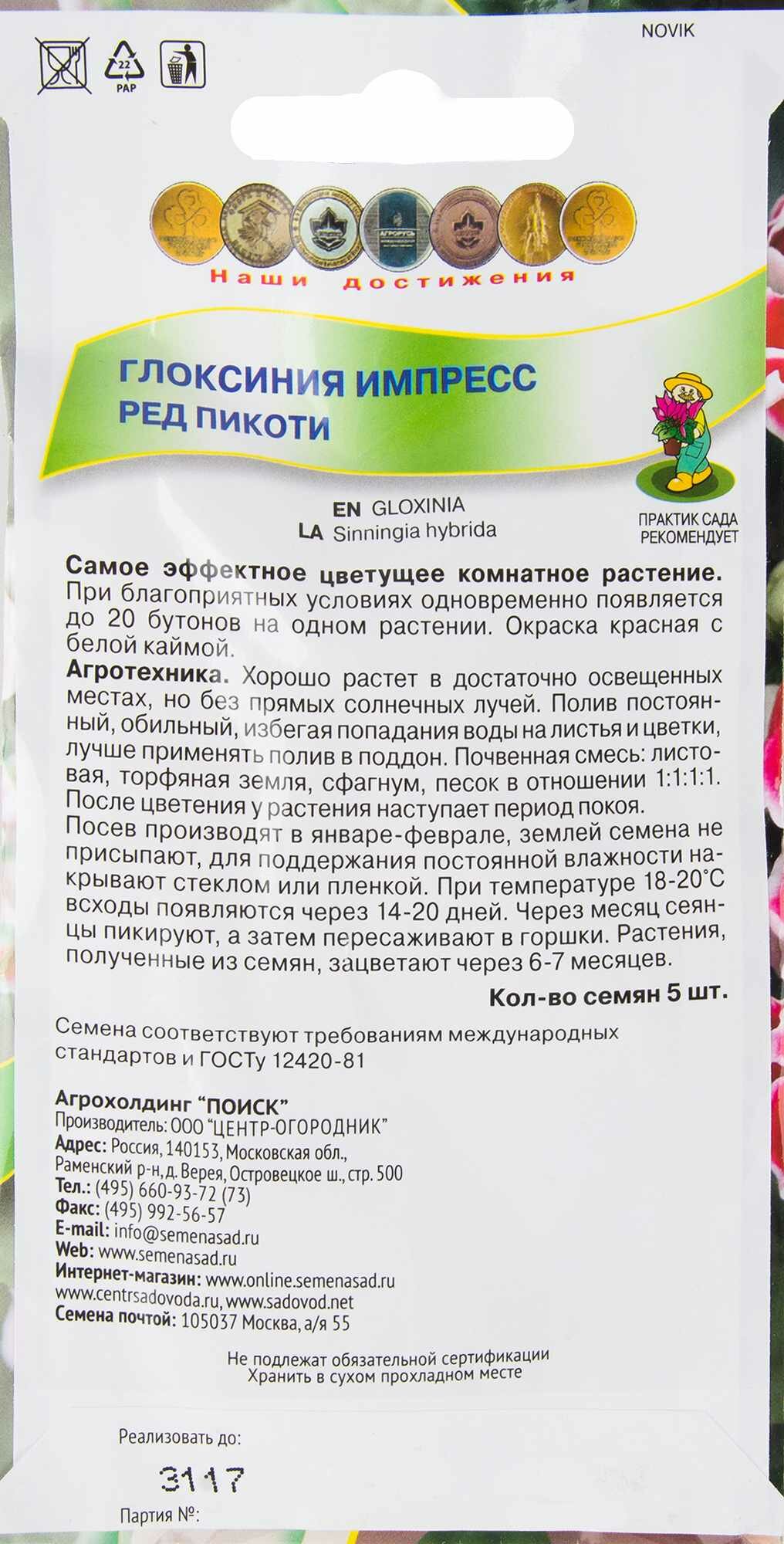 - Глоксиния комнатная, «Импресс Ред», 6 г, Бесплатная доставка из РФ , 1 упаковка