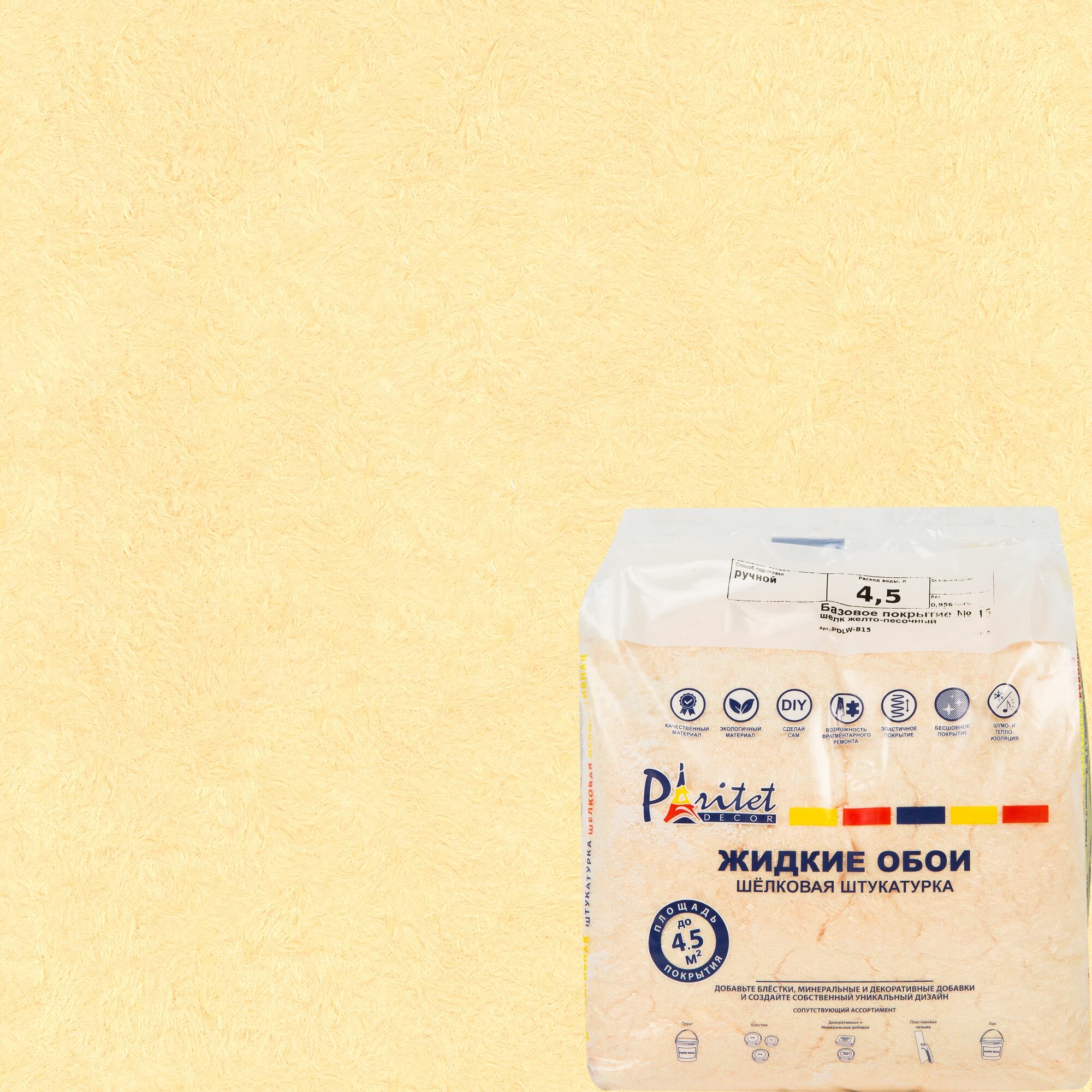 | Модель продукта | 82405589 - 1003493011 - ЖИДКИЕ ОБОИ ШЕЛК 15 - ЖЕЛТО-ПЕС. 1КГ - ООО "ЭКО-Краски" |