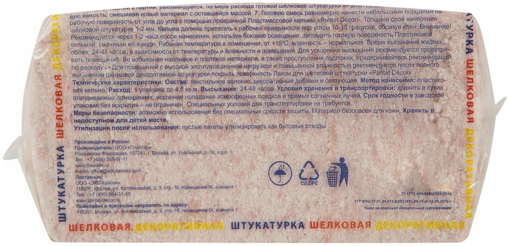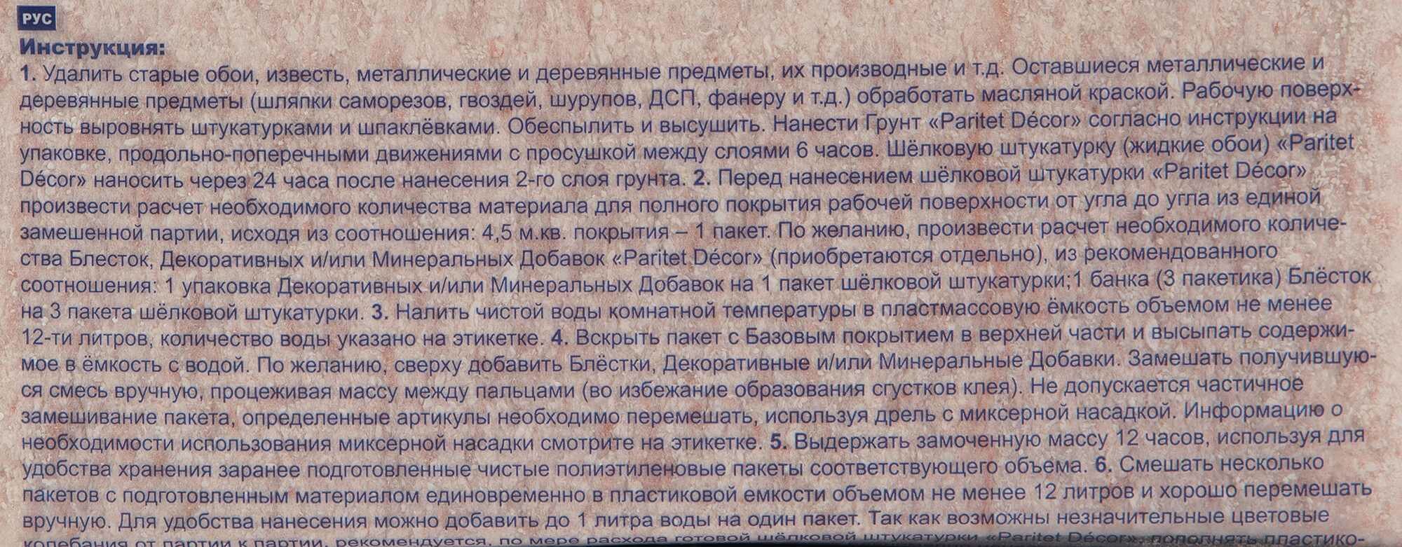 Жидкие обои в стиле «натуральный шарм» — это декоративный материал для стен, сочетающий свойства штукатурки и декоративной краски. Универсальный состав предназначен для отделки жилых комнат. Используется как основа для создания смесей с уникальной фактурой и расцветкой — можно добавить блестки, минеральные и декоративные добавки. Цвет — терракотовый, укрывистость — 4,5 м^2^. В упаковке 1 кг. Страна производства — Россия.