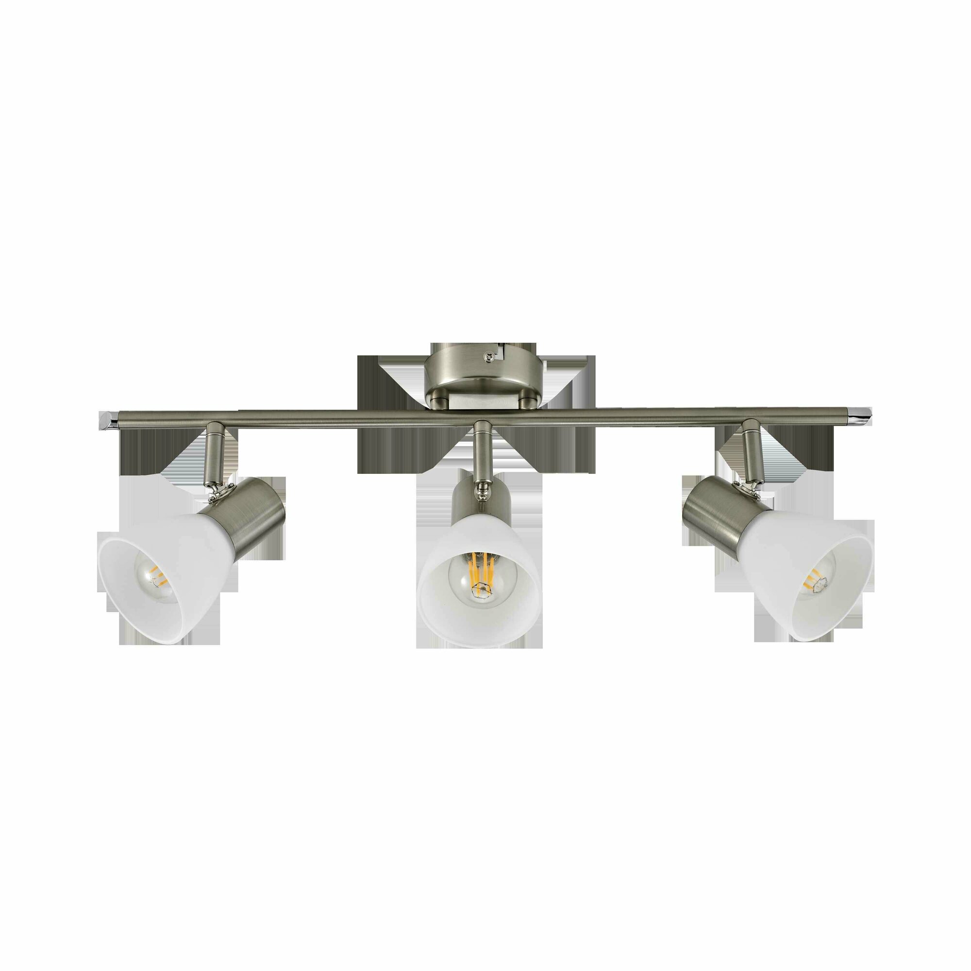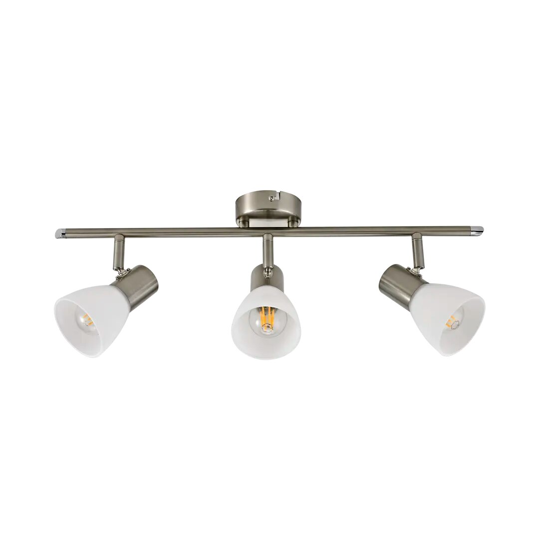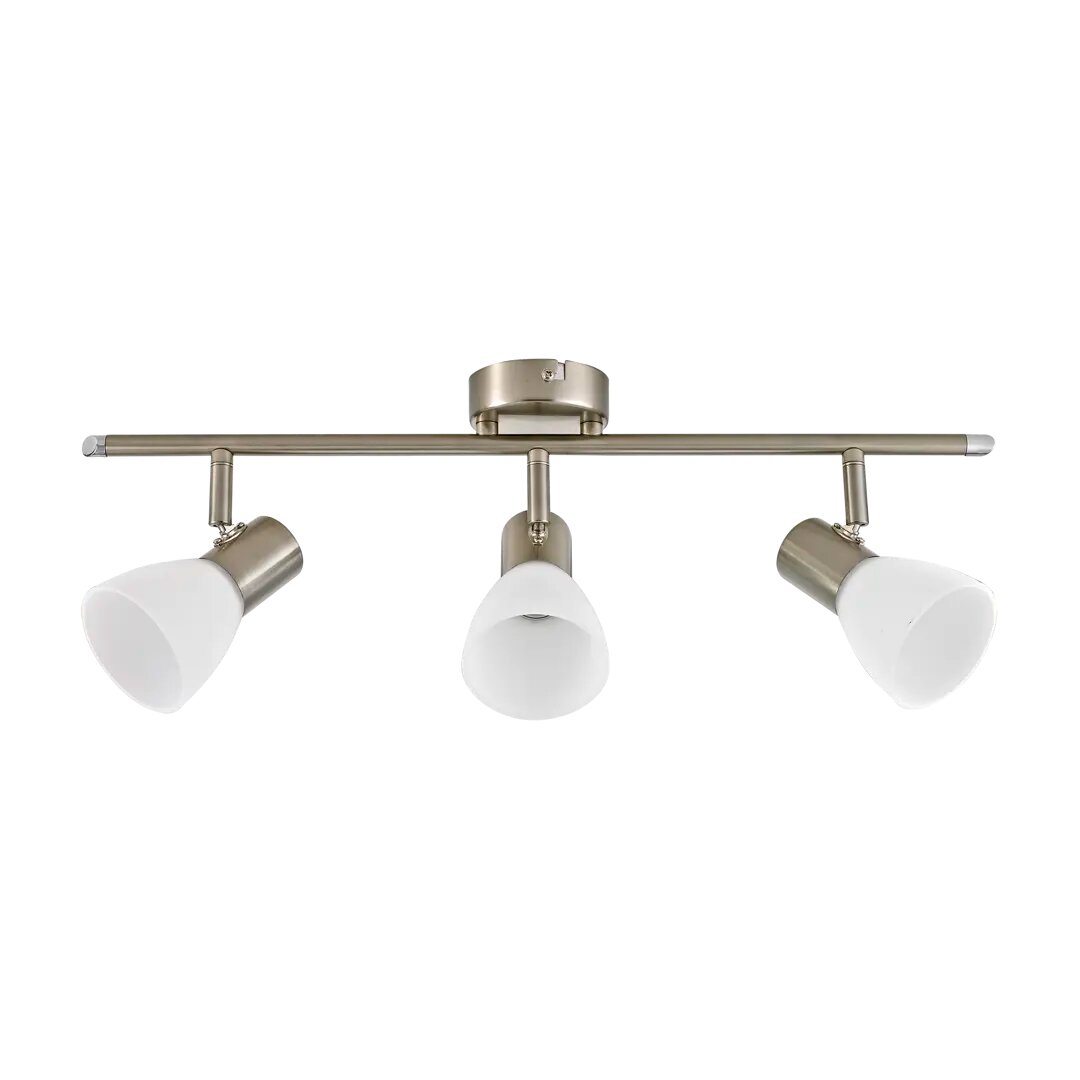 Спот поворотный City на 3 плафона отлично смотрится в спальне или гостиной. Гармоничное сочетание металлического корпуса и матового стекла позволяет легко вписать светильник во множество вариантов дизайна интерьера. Цвет — «никель». Изделие рассчитано на освещение 15 м² площади помещения. Крепится на монтажную планку, нуждается в обязательном заземлении. Цоколь — Е14 (максимальная мощность используемой лампы — 30 Вт). Гарантия от производителя — 2 года. Не подходит для помещений с повышенной влажностью. Страна изготовления — Китай.