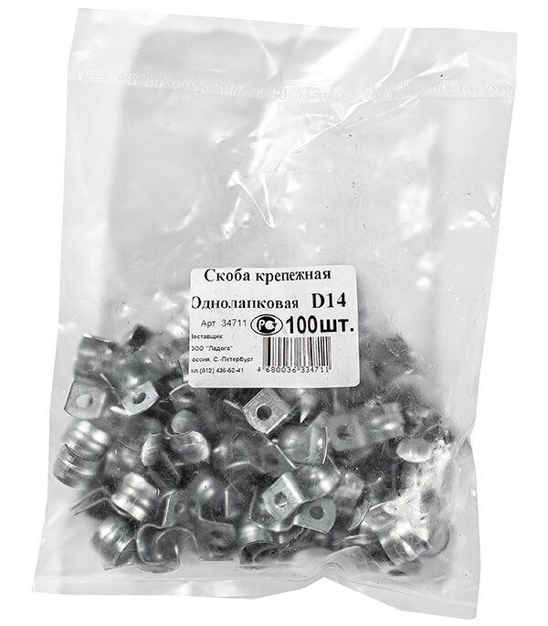 Скоба оцинкованная с одним отверстием Ø14 мм 100 шт. КРЕПКО-НАКРЕПКО