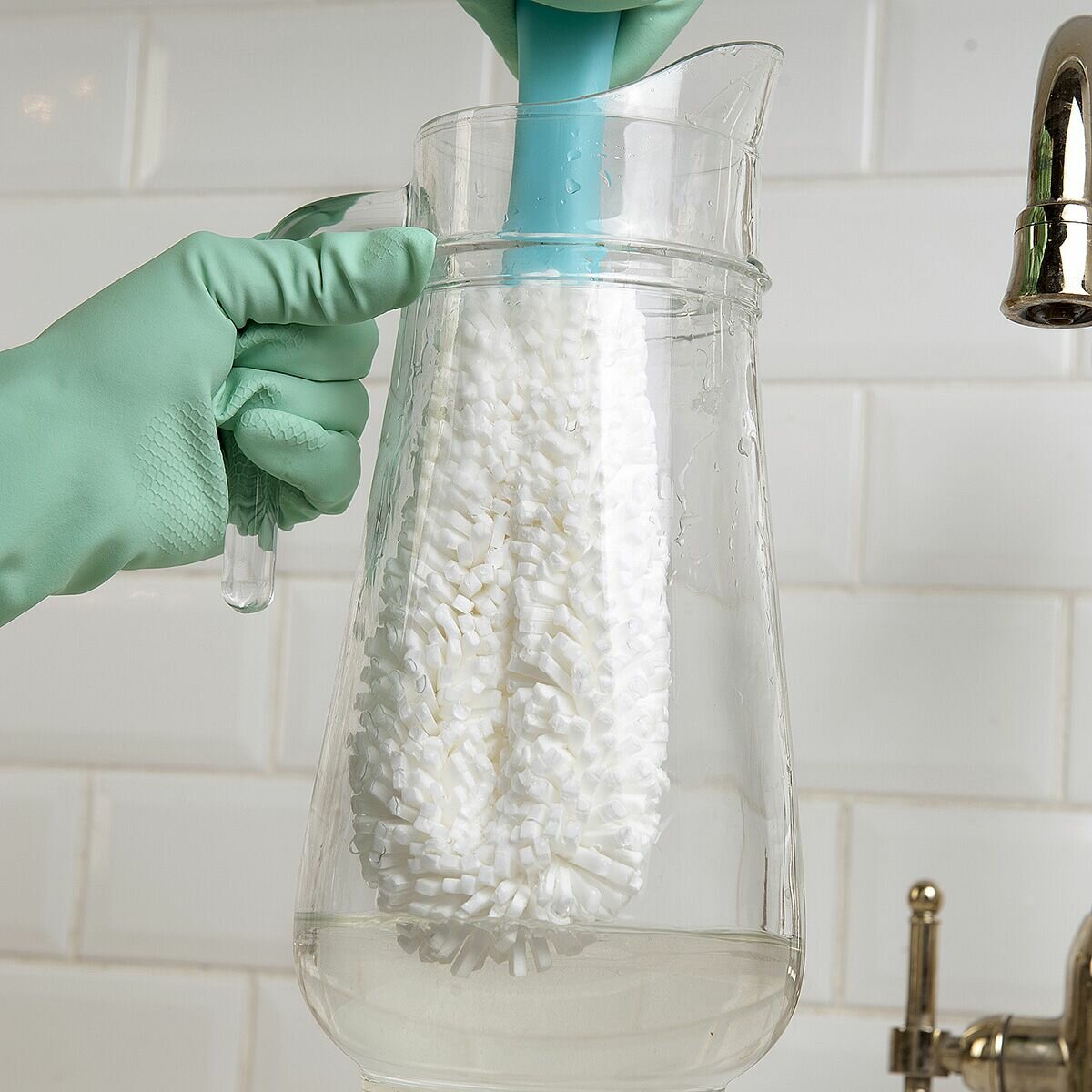 Ершик Youll Love для мытья посуды состоит из рукоятки и петлеобразной рабочей части с покрытием из полимерных мини-губок. Подходит для ухода за бокалами, стеклянными банками, бутылками с широким горлышком.