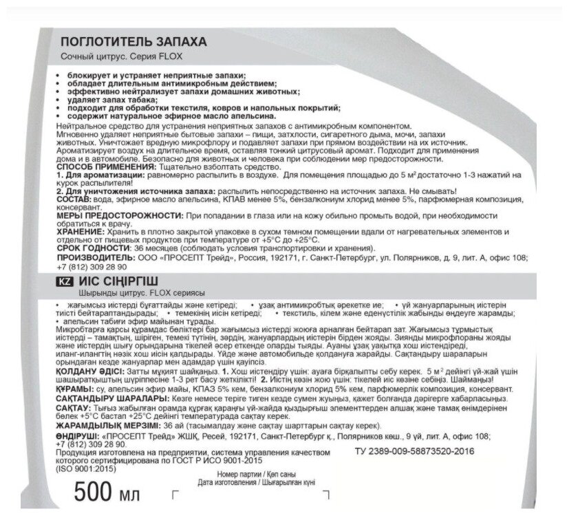 | Тип продукта | Средство для удаления запаха |