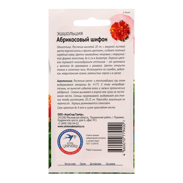 Эшшольция «Абрикосовый шифон» 0.03 г СЕМЕНА ОТ ОКТЯБРИНЫ ГАНИЧКИНОЙ
