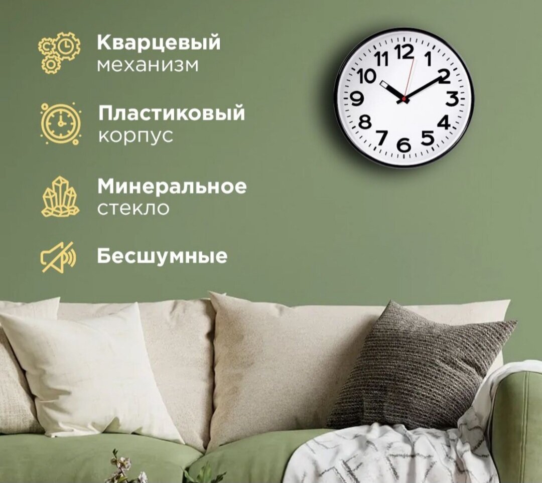 **Часы настенные «Чёрно-белая классика»** предназначены для установки в гостиной, спальне или на кухне. Могут крепиться к стене (на тыльной стороне есть отверстие) или располагаться на полке. Крупные цифры и стрелки позволяют с легкостью определять текущее время.