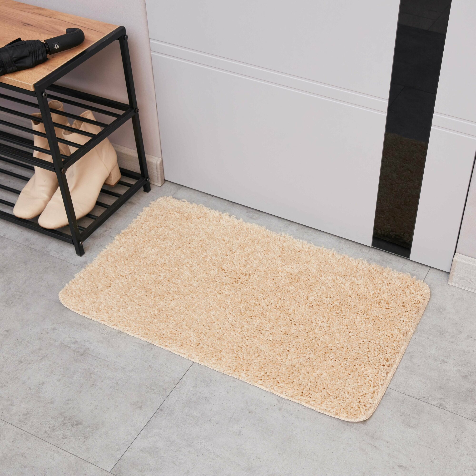 Коврик Rio GR-010 можно положить перед дверью в прихожей или в тамбуре на входе в квартиру, использовать в ванной комнате (модель универсальная). Покрытие с пушистым ворсом отлично собирает грязь и воду, помогает создать уютную атмосферу. Простой дизайн и приятный бежевый цвет вписываются в любой стиль интерьера.