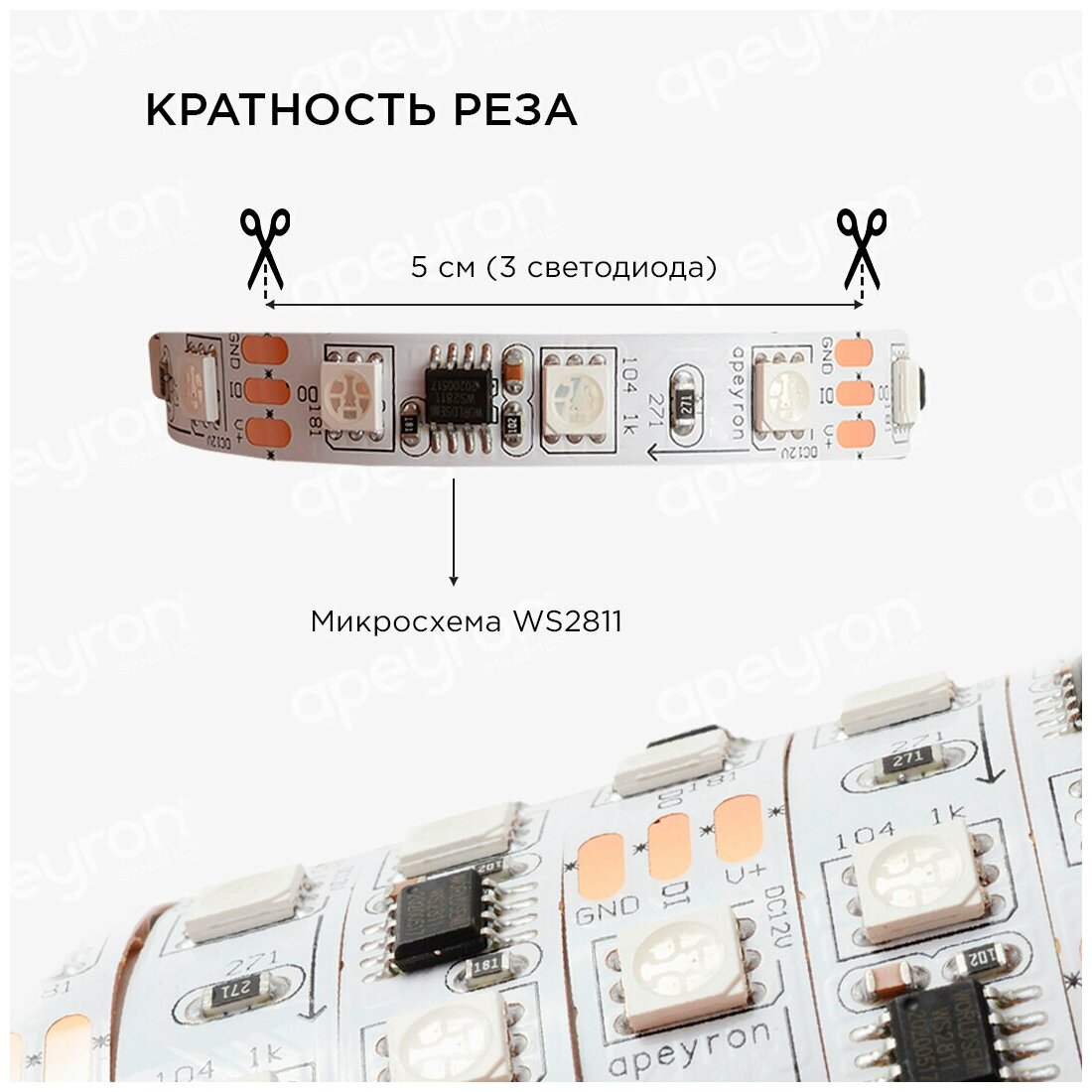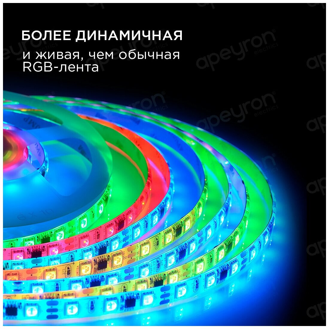 Светодиодная лента адресная SMD 5050 60 диод/14.4 Вт/м 12 В 10 мм IP65 5 м RGB белая подложка Apeyron (85ЦЛ)