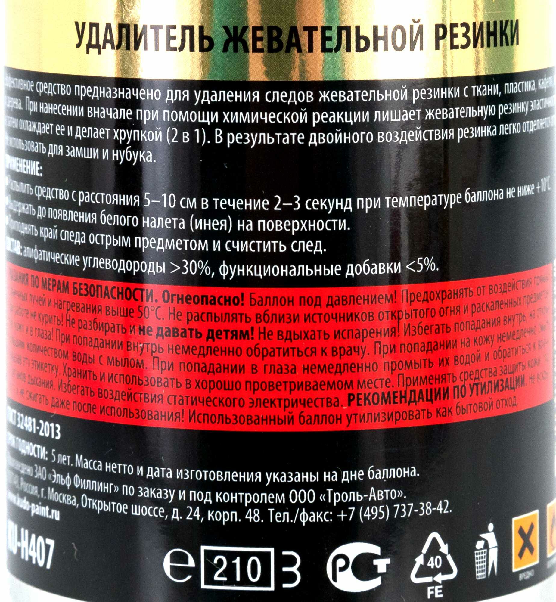 - в составе средства — алифатические углеводороды (от 30%) и функциональные добавки (от 5%);