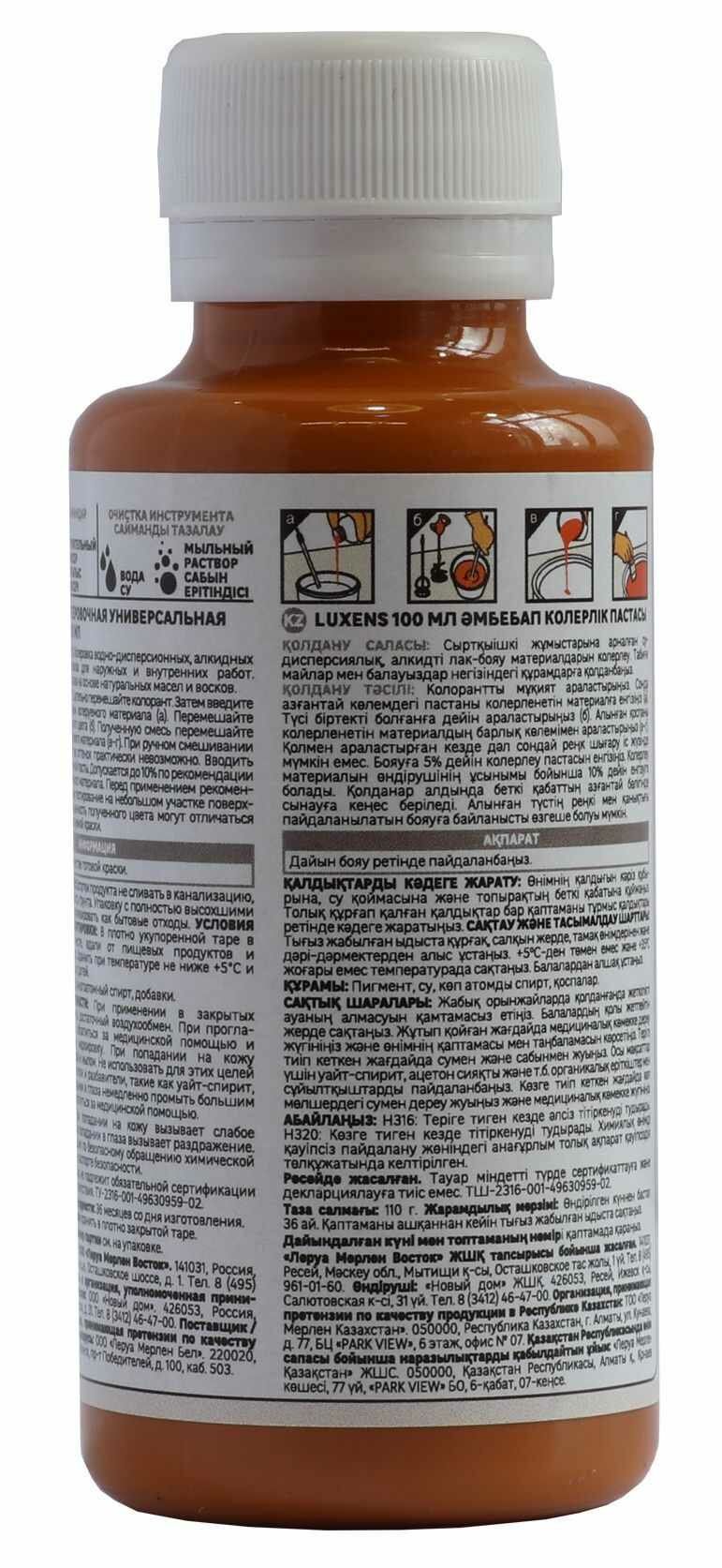 Колорант Luxens универсальный концентрированный — это колеровочная паста для ручного тонирования алкидных, водно-дисперсионных и других красящих составов для внутреннего и наружного использования. Совместим с краской для любых поверхностей. Цвет — бежевый. Колорант позволяет получить желаемый тон, а также создать плавный переход оттенков. Упаковка объемом 100 мл адаптирована под стандартный объем краски. Страна производства — Россия.