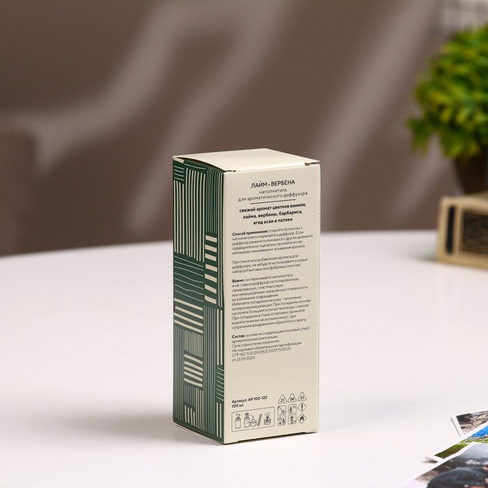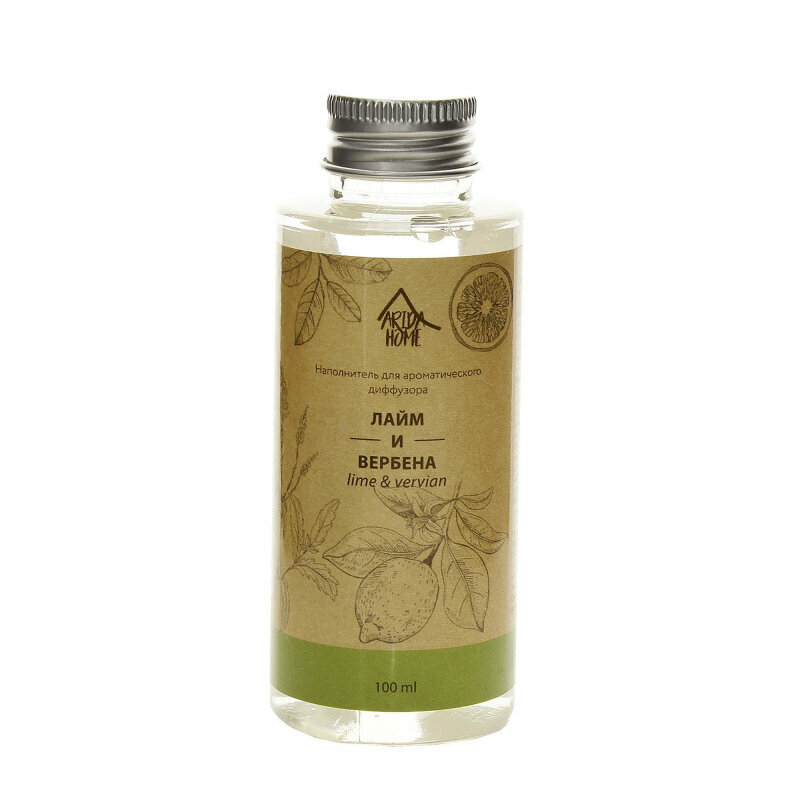 **Наполнитель «Лайм и вербена»** предназначен для ароматического диффузора. Наполнит помещение ароматом свежести и чистоты. Для применения необходимо предварительно помыть уже использовавшийся ранее диффузор и только после этого залить в него ароматическую жидкость.