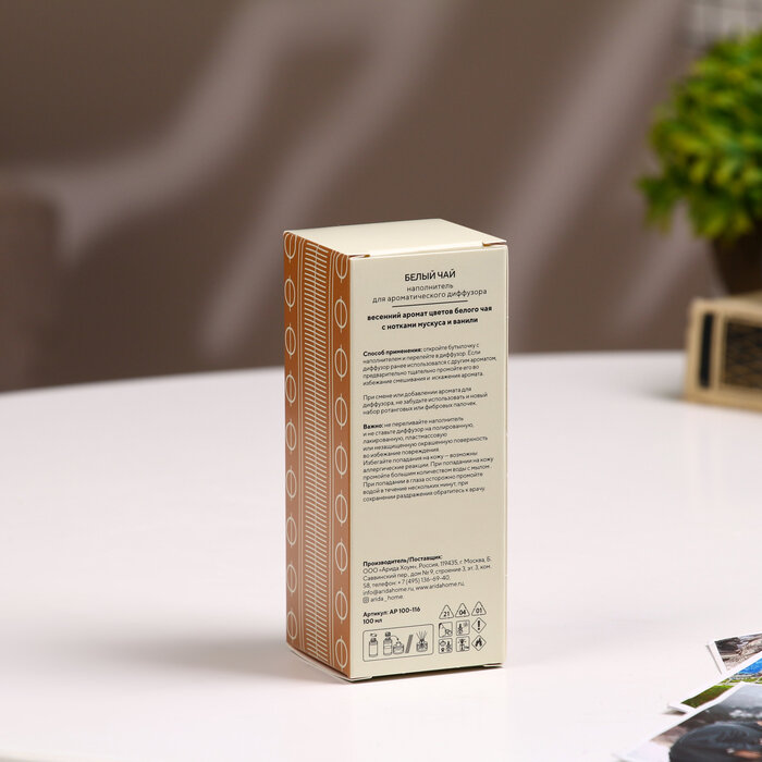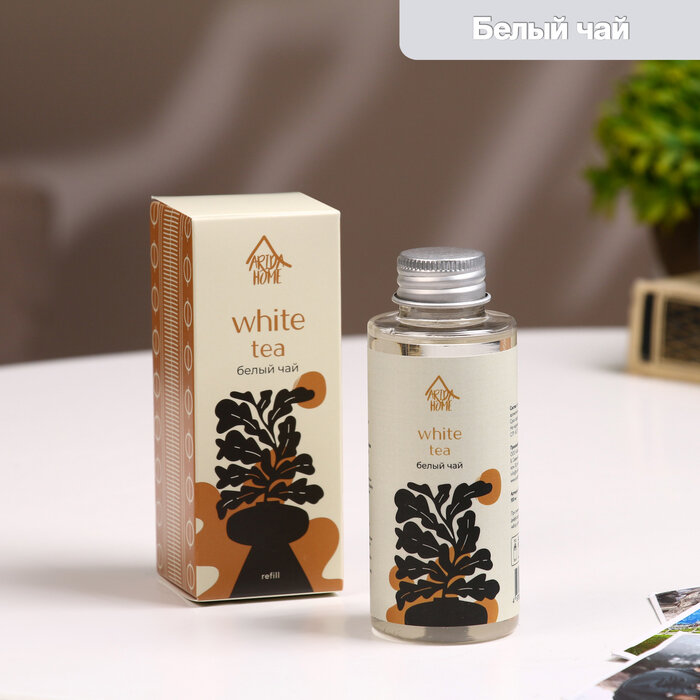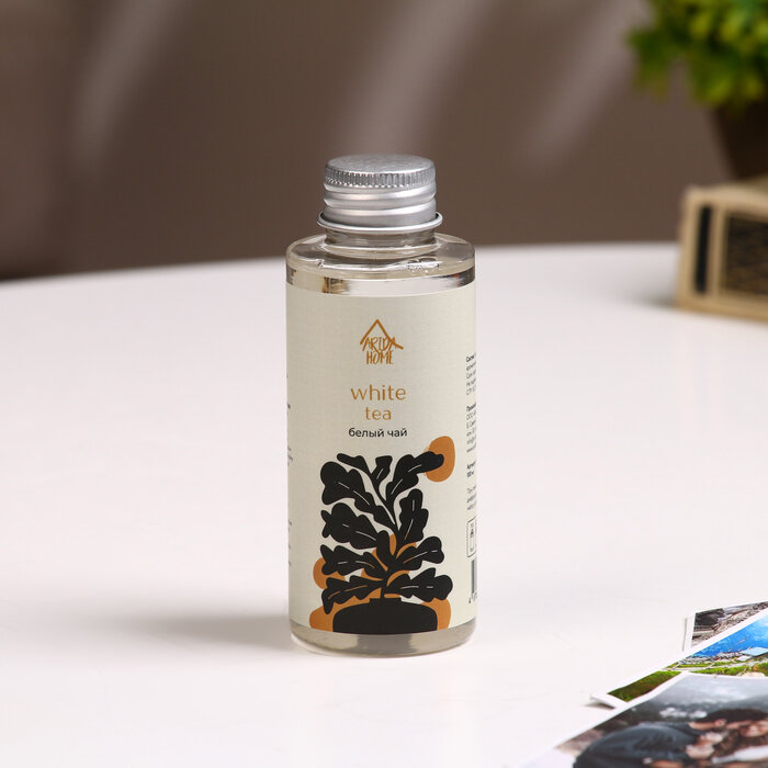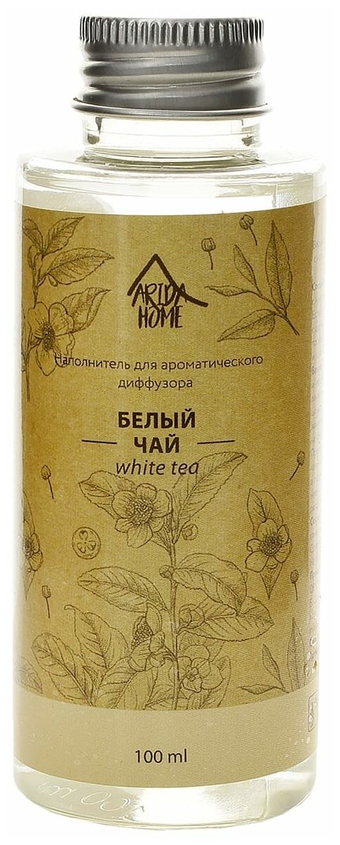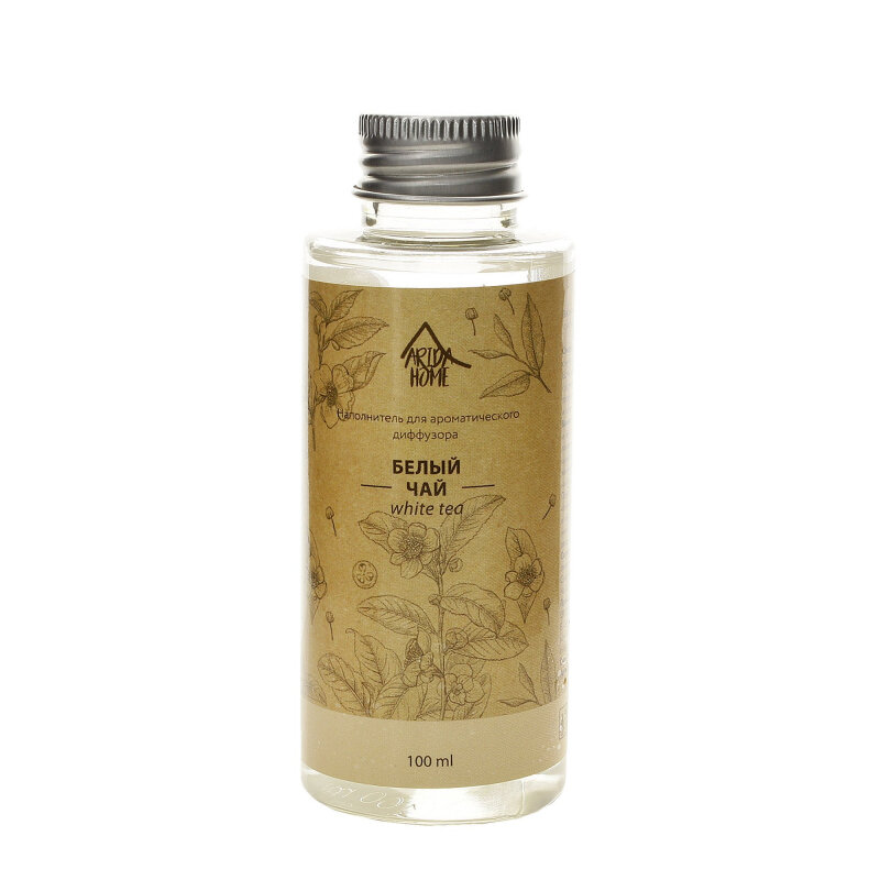 **Наполнитель «Белый чай»** предназначен для ароматического диффузора. Наполнит помещение ароматом свежести и чистоты. Для применения необходимо предварительно помыть уже использовавшийся ранее диффузор и только после этого залить в него ароматическую жидкость.