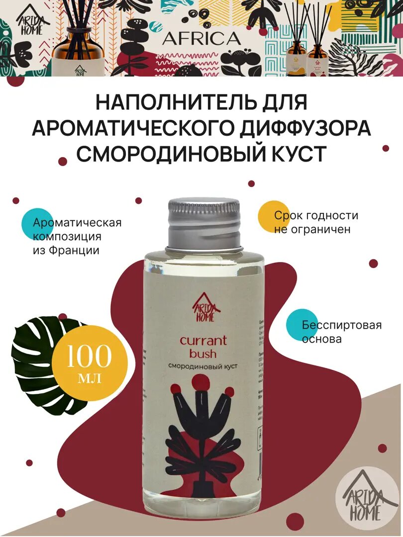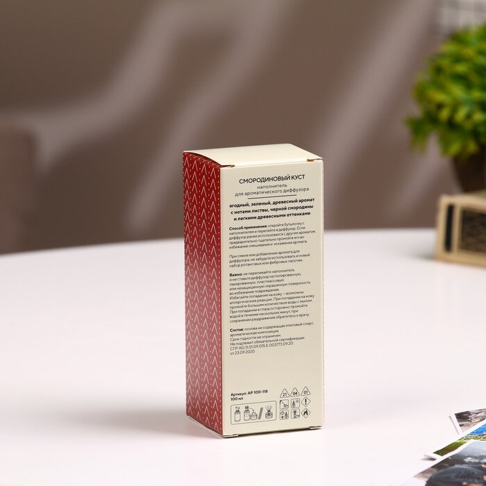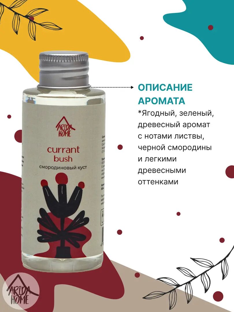 **Наполнитель «Смородиновый куст»** предназначен для ароматического диффузора. Наполнит помещение терпим ароматом спелой смородины. Для применения необходимо предварительно помыть уже использовавшийся ранее диффузор и только после этого залить в него ароматическую жидкость.